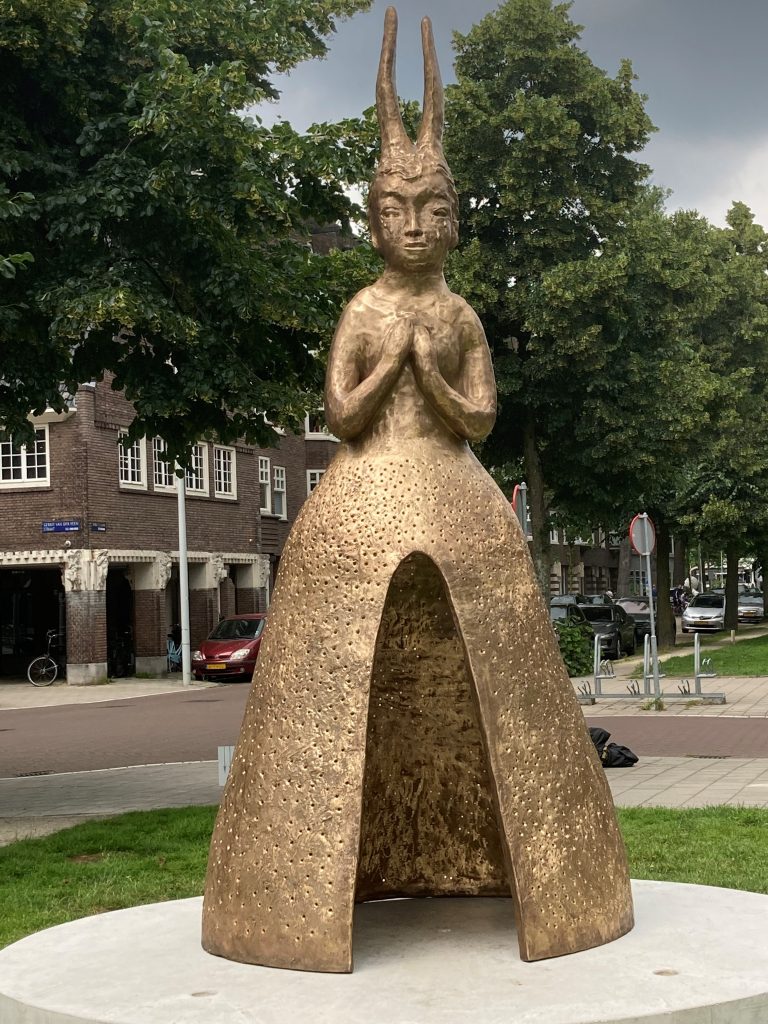 De Spaanse kunstenaar Sánchez Castillo - hij was in 2005 resident aan de Amsterdamse Rijksakademie – geeft op de zevende editie van Art Zuid in de weelderig groene lanen van Berlage’s Zuid, een ijzersterke boodschap af. In zijn bronzen update van het Vrijheidsbeeld in New York gaf hij de bestaande witte Lady Liberty een Afro-Amerikaans gezicht. Wie hier uitleg nodig heeft, leeft onder een steen. Art Zuid-curator Ralph Keuning weet precies wat hij onder de titel ‘Imagine’ wil laten zien: kunstenaars die engagement tonen en leven in het bewustzijn dat humaniteit een verovering is. In de catalogus: ‘Activisme als noodzaak voor menselijkheid, die veelomvattend moet zijn want onrecht is overal onverdraaglijk.’ Art Zuid 2021 maakt een vuist, maar genieten van de beeldenrijkdom kan intussen natuurlijk ook.