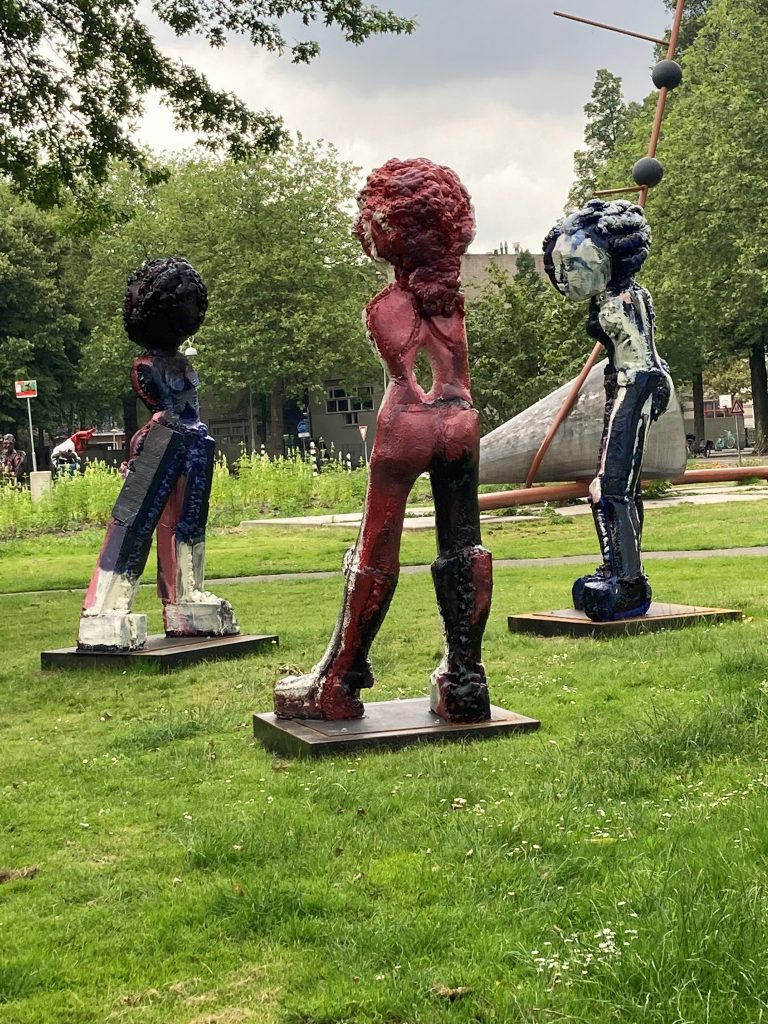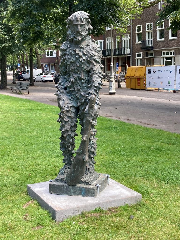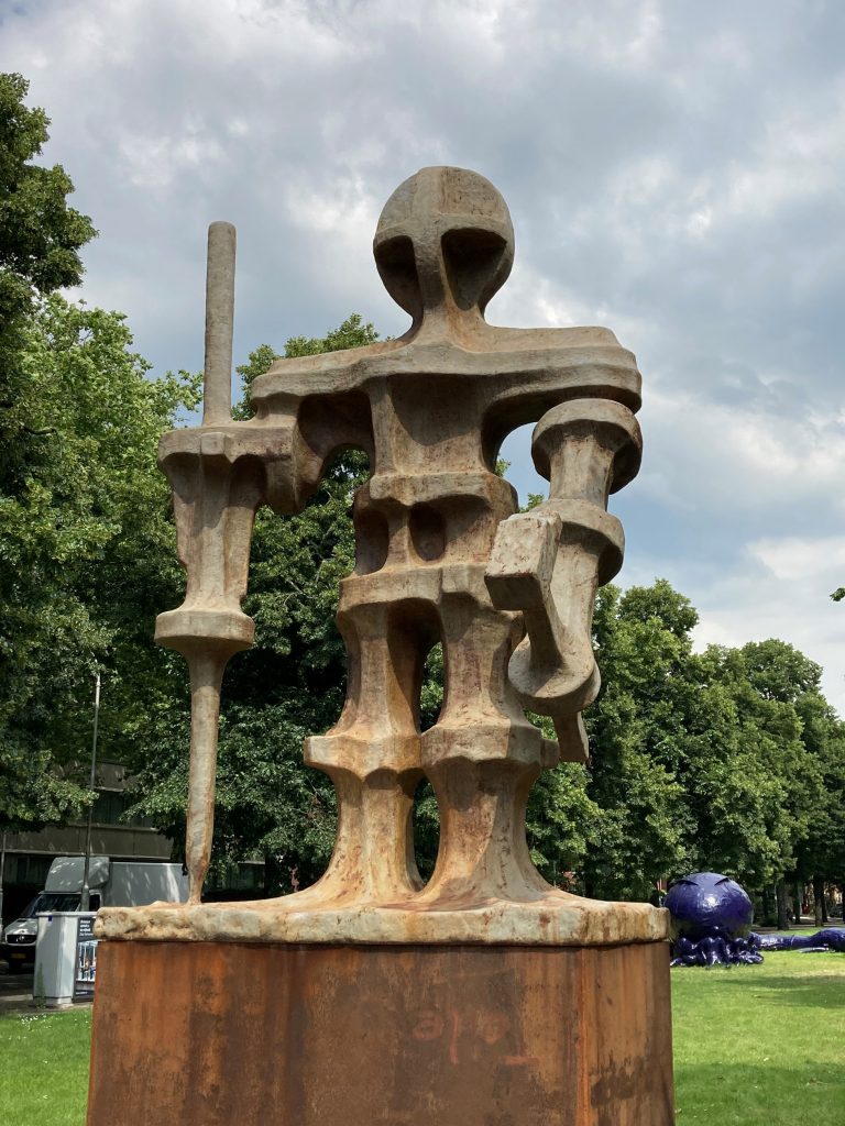Keuning, directeur van publiekstrekker De Fundatie in Zwolle, selecteerde een internationaal gezelschap van vijftig kunstenaars. Onder de grote namen de Italiaan Sandro Chia. Zijn bronzen ‘BABBO’ is een stamvader met dierenvel en knots die volgens Art Zuid lijkt te beseffen dat er voor hem geen eer meer lijkt te behalen in een tijd dat robotsoldaten het slagveld gaan betreden. De catalogus: ‘Bovendien staat het patriarchaat onder druk, zogenaamde sterke mannen die geen verantwoording afleggen aan hun parlement maken er wereldwijd een rotzooi van. Vrouwen en transgenders vechten tegenwoordig ook al in de frontlinies. Bij een motorclub gaan?’