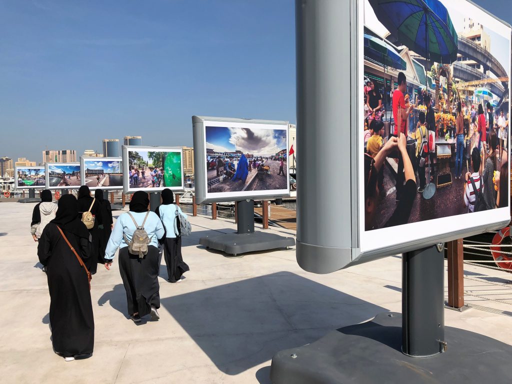*Check: als Museumkijker deze aflevering schrijft is het in Dubai 25 graden. Om toeristen te vermaken is er zelfs een skihal, de grootste ter wereld. Wie de gegevens over Dubai– een van de Verenigde Arabische Emiraten - googelt, komt ogen tekort: ter stimulering van de toeristenstroom zijn woontorens, shopping malls en vermaakscentra overal groot, groter, grootst. Op de boulevard van Dubai Creek in Al Seef, het oude centrum van de stad, lanceerde de Nederlandse fotograaf Jeroen Swolfs afgelopen zondag zijn Streets of the World-expositie ‘Connecting Humanity’. Met een lengte van 1,8 kilometer volgens het persbericht - het verbaast niet - ook de grootste foto-expositie ter wereld. De beelden worden tentoongesteld op billboards van 2 bij 3 meter en in lichtkubussen van 1,30 bij 2 meter.