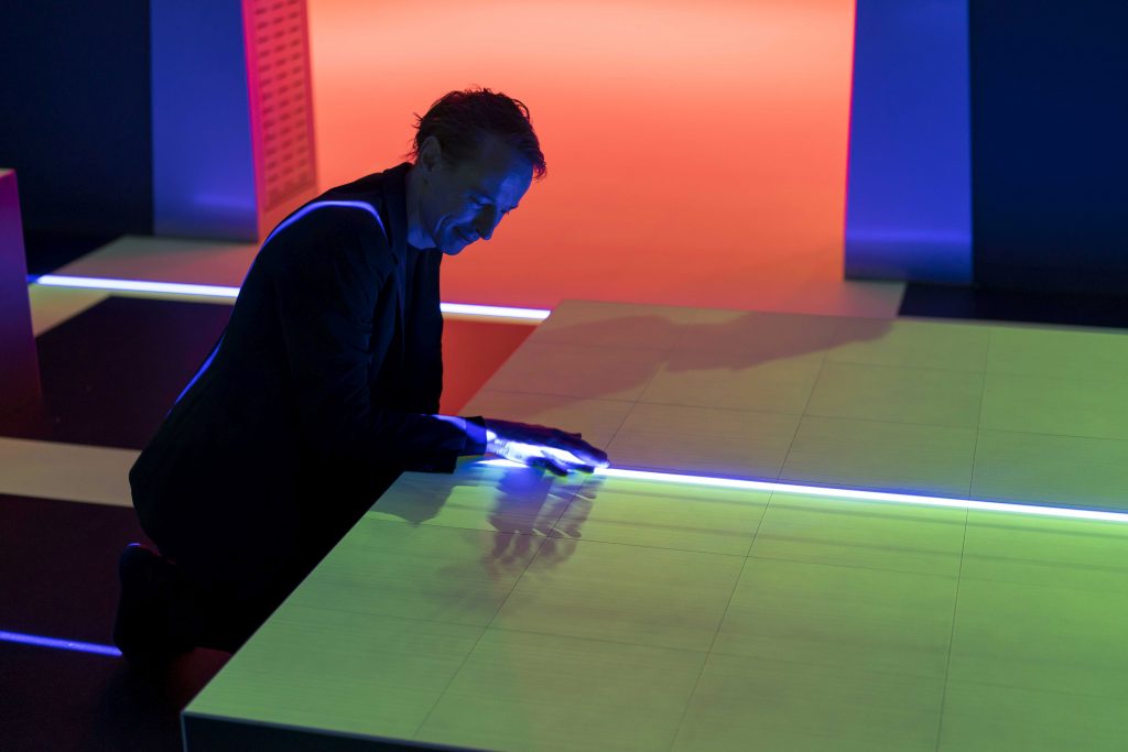 De volgende zaal is de meest minimalistische: leeg met witte wanden en een witte vloer en verlichting die wisselt van kleur. Wat gebeurt er? De zaal maakt foto’s van de bezoekers. Bij warm licht laden vloer en wanden op; wisselt het licht naar groenblauw dan verschijnen de schaduwen van de bezoekers op de wanden en vloer, gebaseerd op de plek waar je stond toen het licht nog roze was. Je verbeelding moet het nu overnemen.