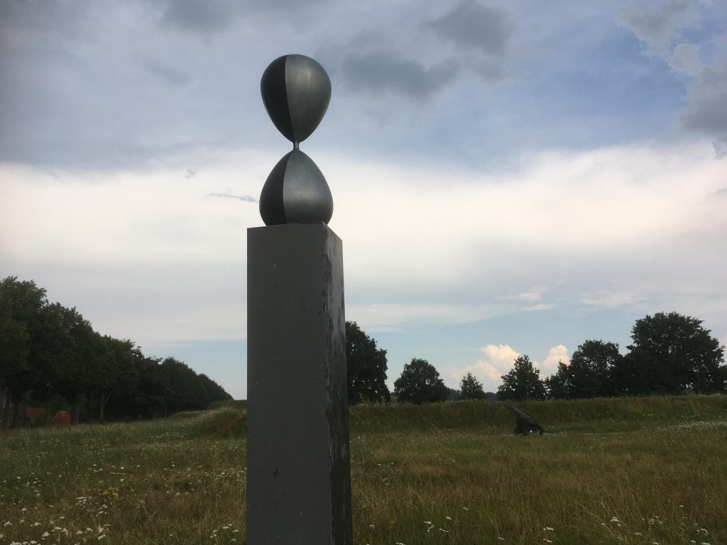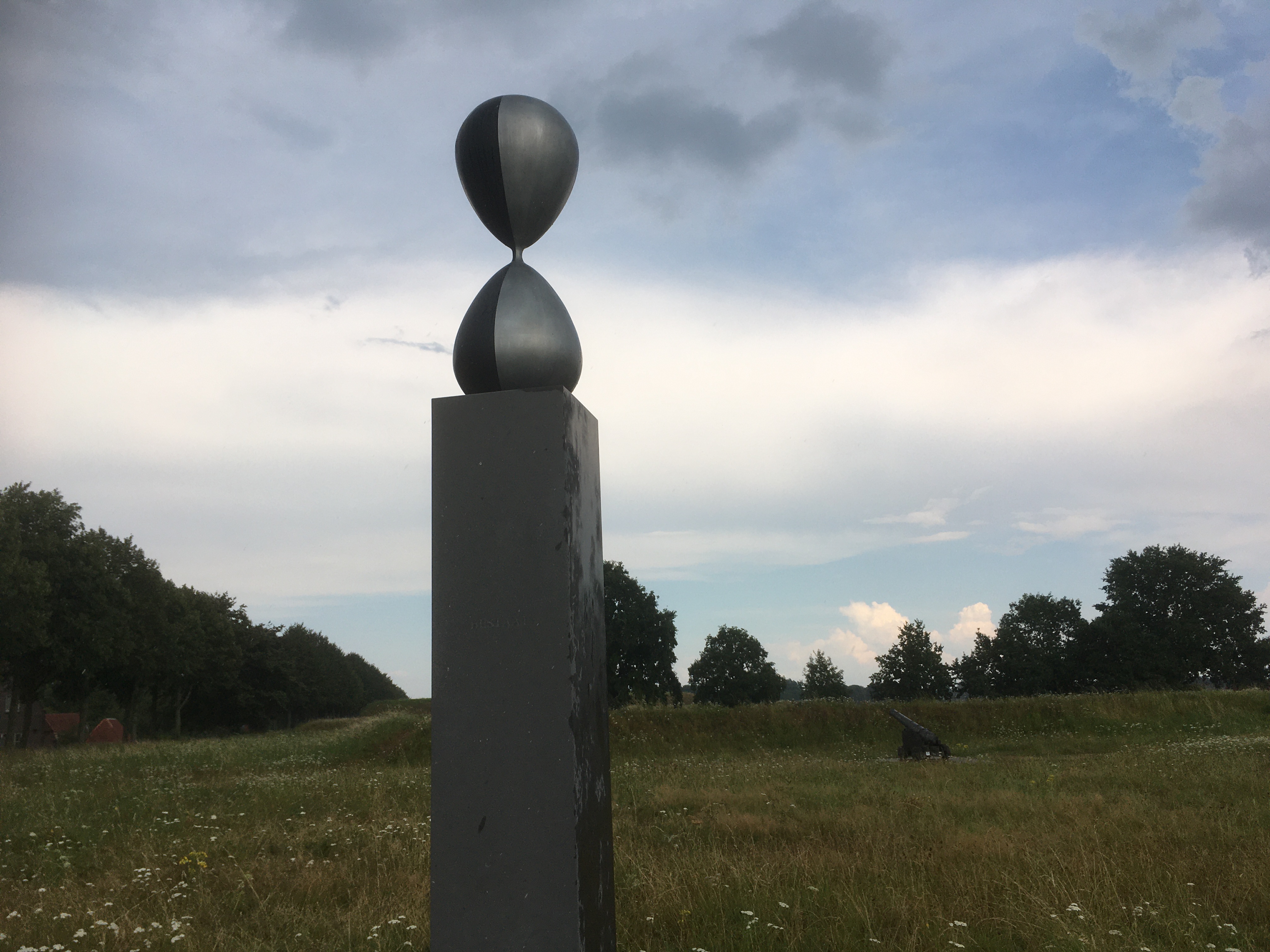 Ook niet onbelangrijk: het werk is omringd door kanonnen. Die stonden er trouwens al, op de vestingwallen van het Brabantse stadje Heusden aan de Maas. Maak een wandeling over de vestingwallen en je komt het tegen. Of loop haastig een paar passen vanaf het grootste parkeerterrein omhoog...