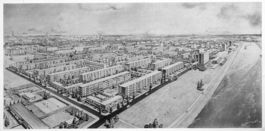 De expositie schetst de achtergrond van Kanaleneiland: begin jaren vijftig werden ten behoeve van de hoognodige woningbouw de gemeentegrenzen opgerekt. Zo kwamen de tot dan toe zelfstandige gemeenten Zuilen, Jutphaas en Oudenrijn onder Utrecht te vallen en daarmee ook de weidegronden tussen het Amsterdam-Rijnkanaal en Merwedekanaal. Op die weilanden werden in korte tijd heel planmatig 7500 woningen uit de grond gestampt. Uniek was het niet, alle steden kregen zulke wijken, noem een Osdorp en Bijlmermeer bij Amsterdam of Alexanderpolder in Rotterdam. Zelf groeide ik op in zo’n wijk in Emmen (Dr). Het was er ruim en licht en groen en vierkant. Het was puur optimisme. Nu vinden we die wijken akelig eenvormig. Maar dit soort bouwen was het gevolg van utopisch socialistisch denken. Ruimte voor de arbeiders.