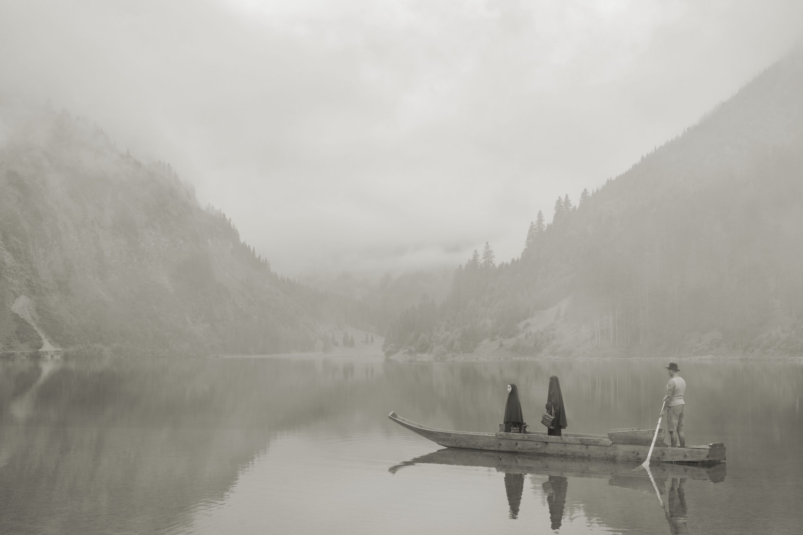 Olaf reisde in 2020 naar Zuid-Duitsland, diep bezorgd over de teloorgang van de natuur. Halverwege de expositie is er een zaal met de serie Im Wald, contemplatief stemmende inktjet drukken, goed voor even ademhalen op dit grootse, druk bevolkte Olaf-overzicht.