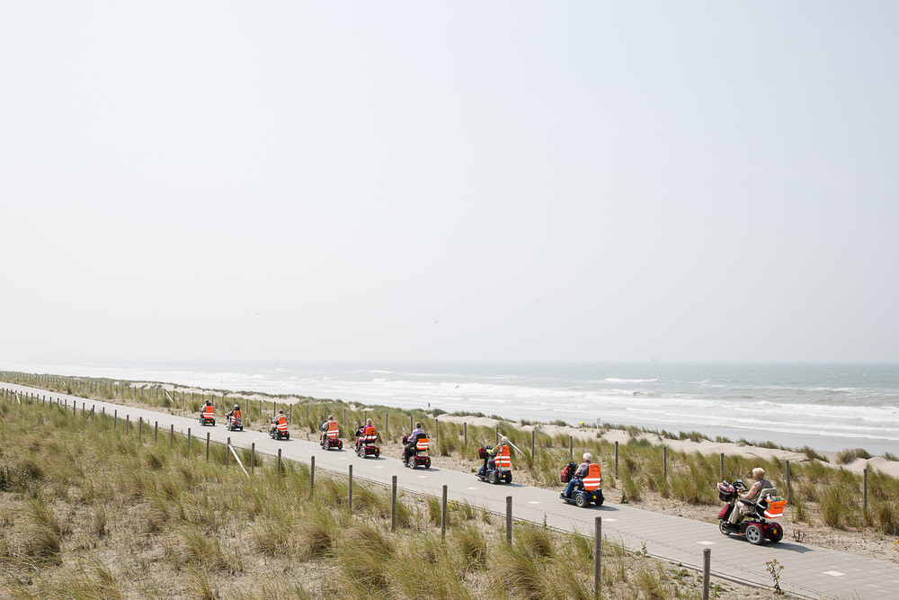 De Scootrangers Maassluis - met 15 leden in de leeftijd van 49 t/m 90 jaar - op weg naar de Avondvierdaagse van Hoek van Holland. 10-08-2012. Foto: Peter de Krom / Hollandse Hoogte