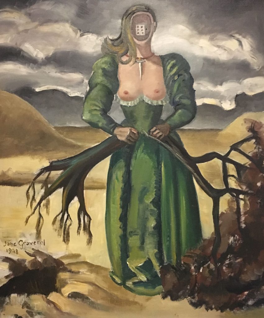 De Brusselse surrealiste Jane Graverol kende ik niet, maar ik was onder de indruk. Haar vroege werk was meer realistisch, maar na 1945 waren haar leven en werk vooral verbonden met het surrealisme en toonden droomwerelden, soms claustrofobische sfeerbeelden. In hoeverre Graverol echt aan De Chirico schatplichtig is? In een interview heeft ze eens gezegd: 'De Chirico, die begreep ik direct.' De vervreemdende ruimtelijke sfeer, de eenzame aanwezigheid van de leegte, vinden we ook terug in het werk van Graverol. Haar schilderijen laten vooral vrouwen zien en daarmee biedt haar werk een mooie vrouwelijke invulling van het surrealisme.