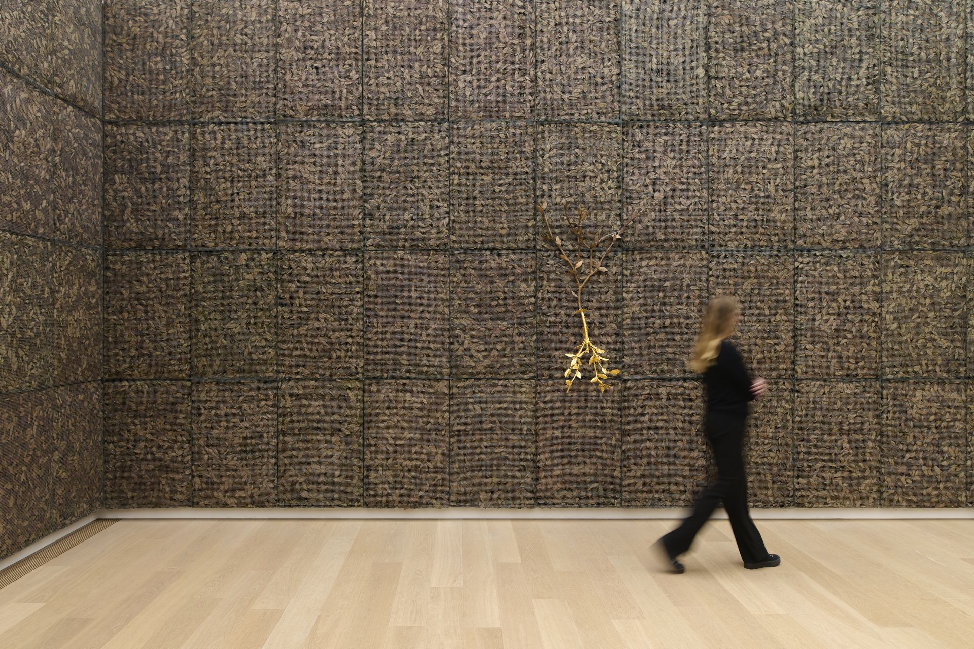 Giuseppe Penone, Respirare l'ombra - foglie di tè (To Breathe the Shadow - Tea Levaves), 2008-2022, wire mesh, tea leaves, bronze elements. Photo bij Antoine van Kaam, Museum Voorlinden,© Archivio Penone, c/o Pictoright Amsterdam 2022