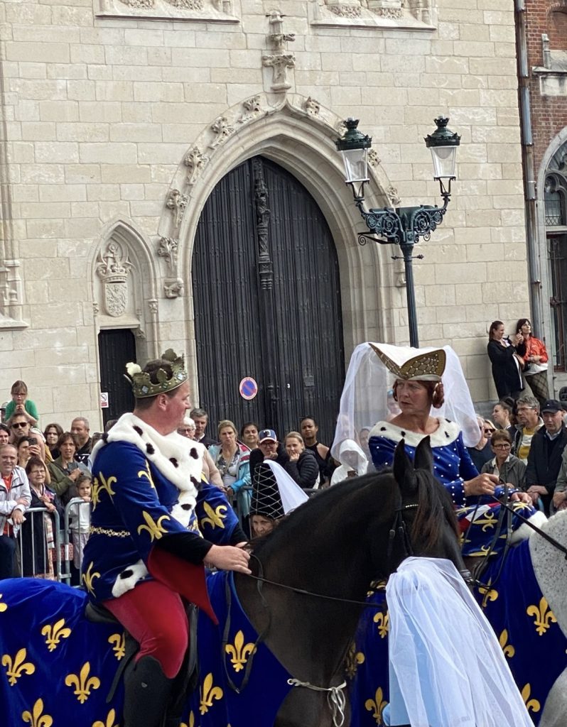 Drie kilometer 'Gouden Boomstoet' trok gisteren door de historische binnenstad van Brugge. Met 2000 figuranten van jong tot oud, praalwagens, stadsreuzen, dromedarissen, schapen en paarden werd het huwelijk gevierd van de pauzenloos ambitieuze veldheer Karel de Stoute met de Engelse prinses Margaretha van York.