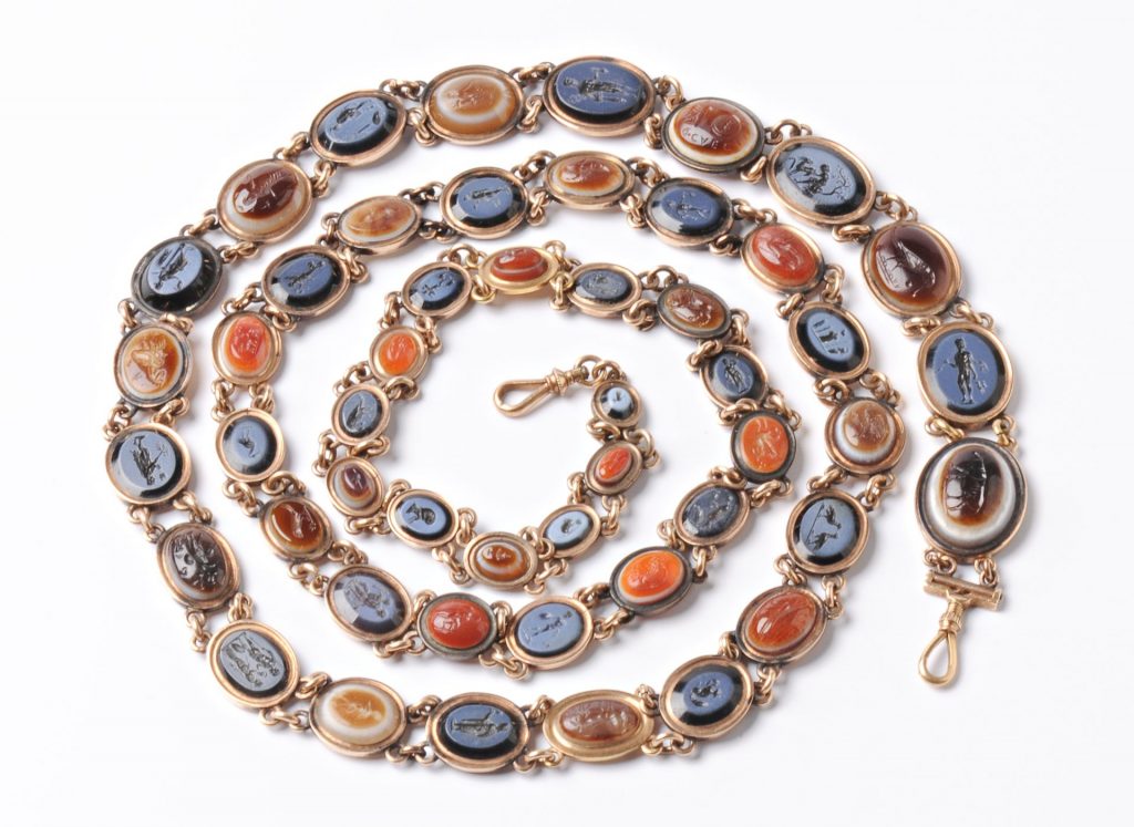 *Amalia van Solms (1602-1675), echtgenote van Oranje-prins Frederik Hendrik, liet in een vergulde soepterrine een groot aantal gesneden stenen verwerken, een gewoonte onder liefhebbers van bewerkte stenen in de Gouden Eeuw om kunst- en gebruiksvoorwerpen mee te verfraaien. De terrine zal zijn te zien op ‘Pracht & Precisie’ in het Rijksmuseum van Oudheden in Leiden: een expositie van 200 zegels, sierstenen en amuletten met minutieus gegraveerde afbeeldingen uit het ‘oude’ Nabije Oosten, Egypte en de Klassieke Wereld. De fraaie gesneden voorstellingen van goden, historische gebeurtenissen, dieren, vorstenportretten en magische tekens, vaak niet groter dan een vingertop, konden ook een functionele of symbolische betekenis hebben: de oudste stenen om een zegelafdruk mee te maken, later waren ze in gebruik als siervoorwerp (meestal een ring), talisman of amulet. Er zal ook een horlogeketting van aaneengesmede stenen zijn.