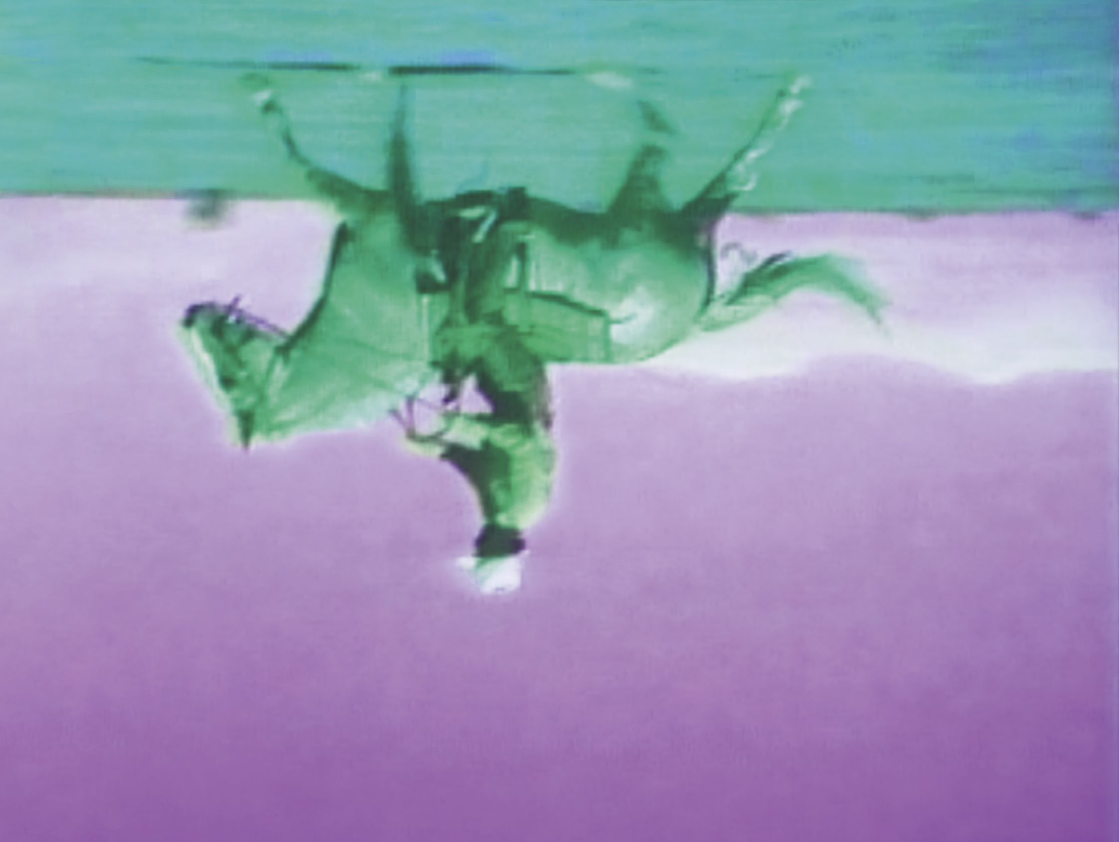 Nauman’s humor schijnt ook door in de laatste video-werken. Op een ervan toont hij zich als de paardenliefhebber die hij is. Naar eigen zeggen houdt hij zich in de laatste jaren liever met zijn ranch bezig dan met kunst. De video vertoont hem als galopperende rijder over een rood strookje land. Opeens draait het beeld en wordt hij een groene rijder, die net als een insect met paardenbenen vliegensvlug aan het plafond krabbelt. Dan draait het beeld opnieuw en niet de paardenbenen, maar het gewicht van de lichamen van paard en ruiter krijgt weer alle aandacht: de waarneming wordt niet meer gefopt.