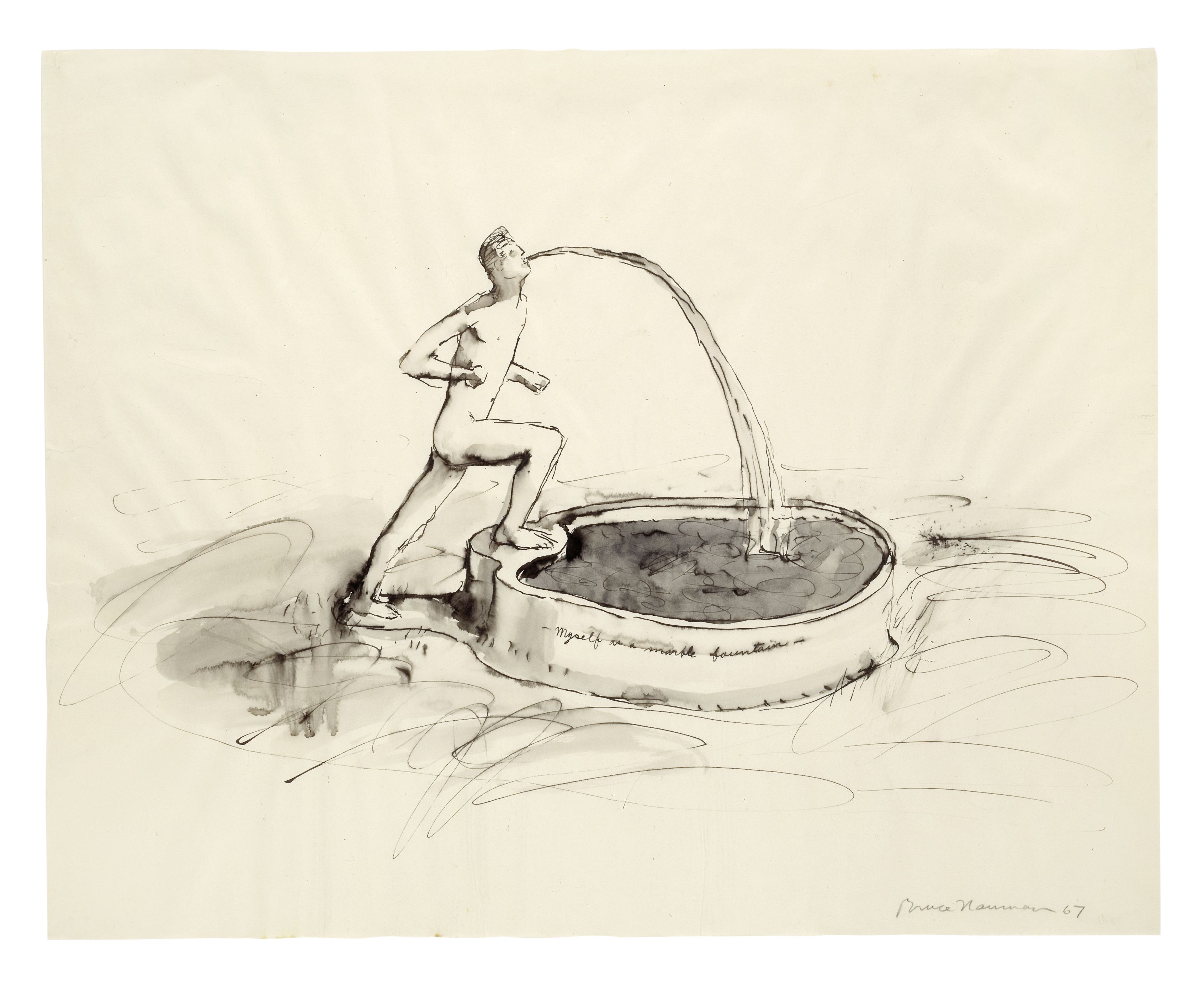 Met dit knipoogje naar Duchamp is de boodschap veranderd: de bezoeker is de mede-schepper, sinds de kunstrichtingen happening en fluxus geen nieuw statement. Nauman heeft daar ook nooit aan bijgedragen, maar binnen zijn werk is deze boodschap nieuw. Op oudere foto’s en tekeningen claimt hij met titels: ‘the artist as a fountain’.