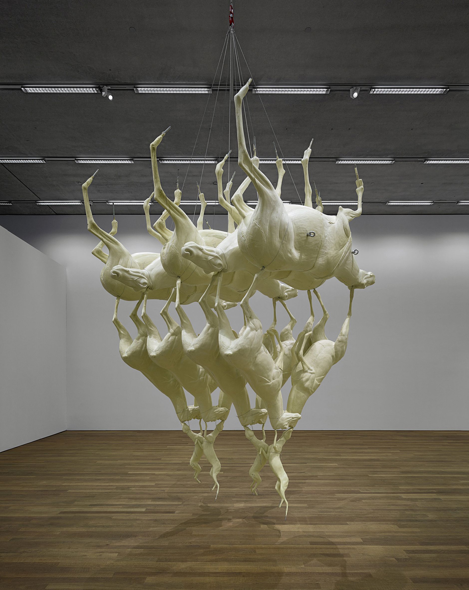 Bruce Nauman: Disappearing Acts, 17 March–26 August 2018, Schaulager® Münchenstein/Basel, installation view with Bruce Nauman, Leaping Foxes, 2018, Polyurethane foam with steel and wire cables, Collection the artist, Courtesy Sperone Westwater, New York, © Bruce Nauman / 2018, ProLitteris, Zurich, photo: Tom Bisig, Basel
