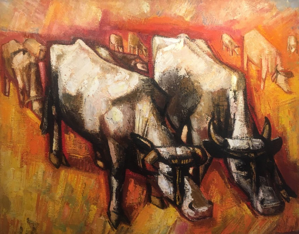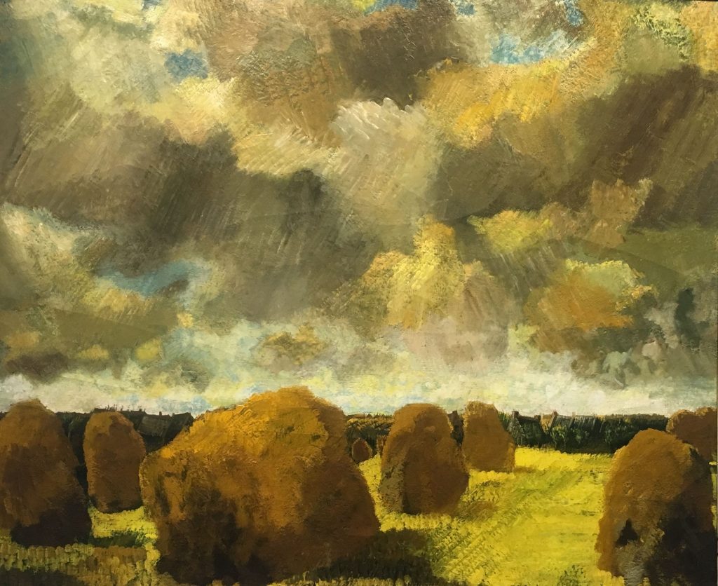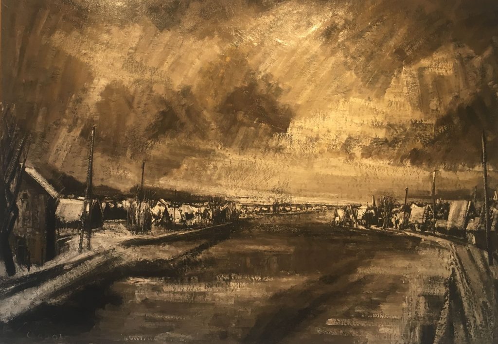 De oorlogscollectie op de tweede verdieping van het museum begint bij het bombardement op Rotterdam in mei 1940, waarvan hij vanuit zijn huis de verzengende rode gloed boven de stad kon zien. De vluchtelingen die hij tijdens de oorlog schilderde blijven je bij: uitgeputte mensen in colonne met een koffertje, een persoon met een vogelkooitje, een moeder met een gewond kind. Het is duister indringend werk. Het doet me denken aan foto's van vluchtelingen uit de Balkan. Uit Syrië. Die in Europa niet echt welkom zijn. Ik heb ze nog nooit zo geschilderd gezien. Na de oorlogswerken komen er weer wat zonnige landschappen. ‘Zomer (Vrede)’ heet een schilderij uit 1945. Gelukkig.