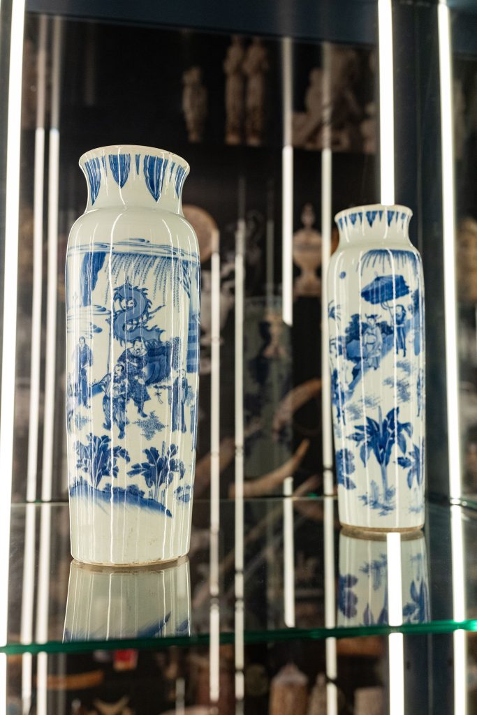Tussen 1822 en 1876 huisvestte het Mauritshuis het Koninklijk Kabinet van Zeldzaamheden. Vanuit Oceanië tot Japan en Nederlands-Indië tot Afrika werden daarvoor duizenden objecten uit een veelvoud aan culturen naar Den Haag gestuurd. Vanzelfsprekend in de 19de eeuw en als kwalijke opvatting nog steeds niet uitgeroeid: die culturen zouden een lager niveau dan die van West-Europeanen hebben. Zo sprak de directeur van het Kabinet zonder dat iemand ervan opkeek, van ‘wilden, halfwilden of halfbarbaren, halfbeschaafden en beschaafden’. Voor ‘Het verdwenen museum’ heeft het Mauritshuis 120 objecten uit de eertijds bomvolle zalen gerealiseerd, gerangschikt in vitrines met de thema’s Oranje, China, Japan, Wereldwijd en Volkenkunde. Koning Willem I, in 1816 aan de wieg van het Kabinet, gaf onder meer de vilten hoed met kogelgat van Ernst Casimir (anoniem, in of voor 1632) ten geschenke. En een harnas van niemand minder dan Piet Hein.