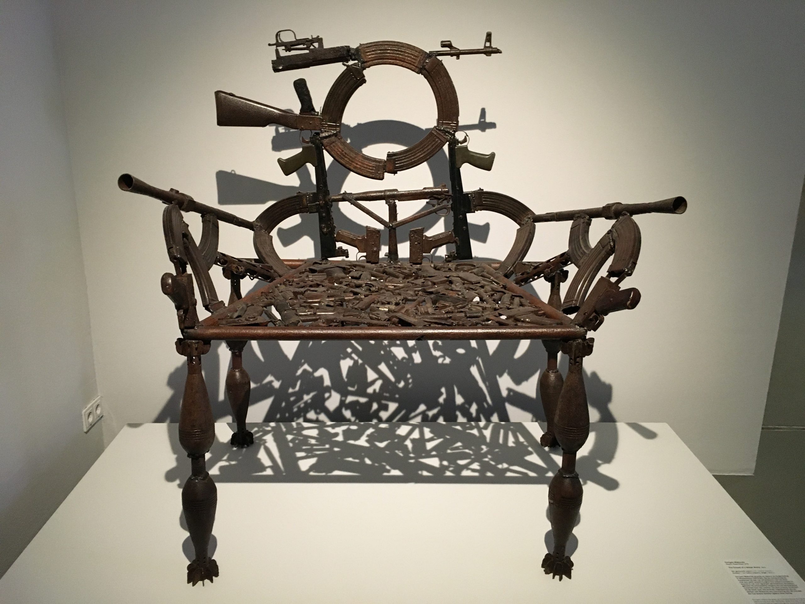 Zoals te verwachten begint de tentoonstelling met de beroemde lattenleunstoel van de Utrechtse meubelmaker Gerrit Rietveld, de meest iconische stoel uit de eigen collectie. Rietveld ontwierp de stoel waarschijnlijk naar aanleiding van een prijsvraag van de Haarlemse Museum van Kunstnijverheid ‘Ontwerp een armstoel voor minder dan 35 gulden.’ Die van Rietveld had slechts 18 gulden gekost. Inmiddels is dit ontwerp meer dan honderd jaar oud, het was grensverleggend, het staat symbool voor activisme, experiment en plezier. Wat we hier zien is hoe het ontwerp nog altijd vele meubelmakers inspireert. Zo maakte het collectief General Idea in 1996 Infe©ted Rietveld, waarbij ze het bekende geel van de stoel groen kleurden om aandacht te vragen voor het aidsvirus. Victor Sonna bevraagt de stoelen van Rietveld in zijn werk ‘Nobody gives a shit about Rietveld in Mali’ (2018).