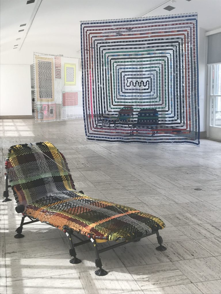 Museumkijker ontdekte verrassend menselijke maskers van rotan, touw, garen en smeltlijm, een tableau kleurige handschoenen van touw en garen en aantrekkelijke ‘Sample Beds’ van textielsoorten, garen en touw. Hoogtepunt vond ze de installatie ‘Tabletop Lights’, een héle zaal tafels met feestelijke lichtbronnen in zulke vernuftige bouwsels dat ze ogen tekort kwam.