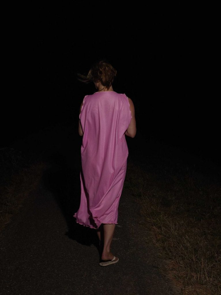 Voor 'Insomnia', portretteerde ze zestien mensen, ieder met een eigen reden waarom ze de slaap niet kunnen vatten. Ze fotografeerde hen niet in hun eigen huis, maar in huizen die ze huurde en ensceneerde. In een donkerblauw geschilderde zaal zien we mannen en vrouwen, oud en jong, in bed, op de grond, tussen de deurposten, in een vloerkleed gerold, in bad, buiten, wandelend in een nachtpon. duistere omgevingen, wondere lichtinval, ongemakkelijke houdingen. En heel aanwezig is een beetje vervreemdende sferische soundscape. Een hele goede sfeer.