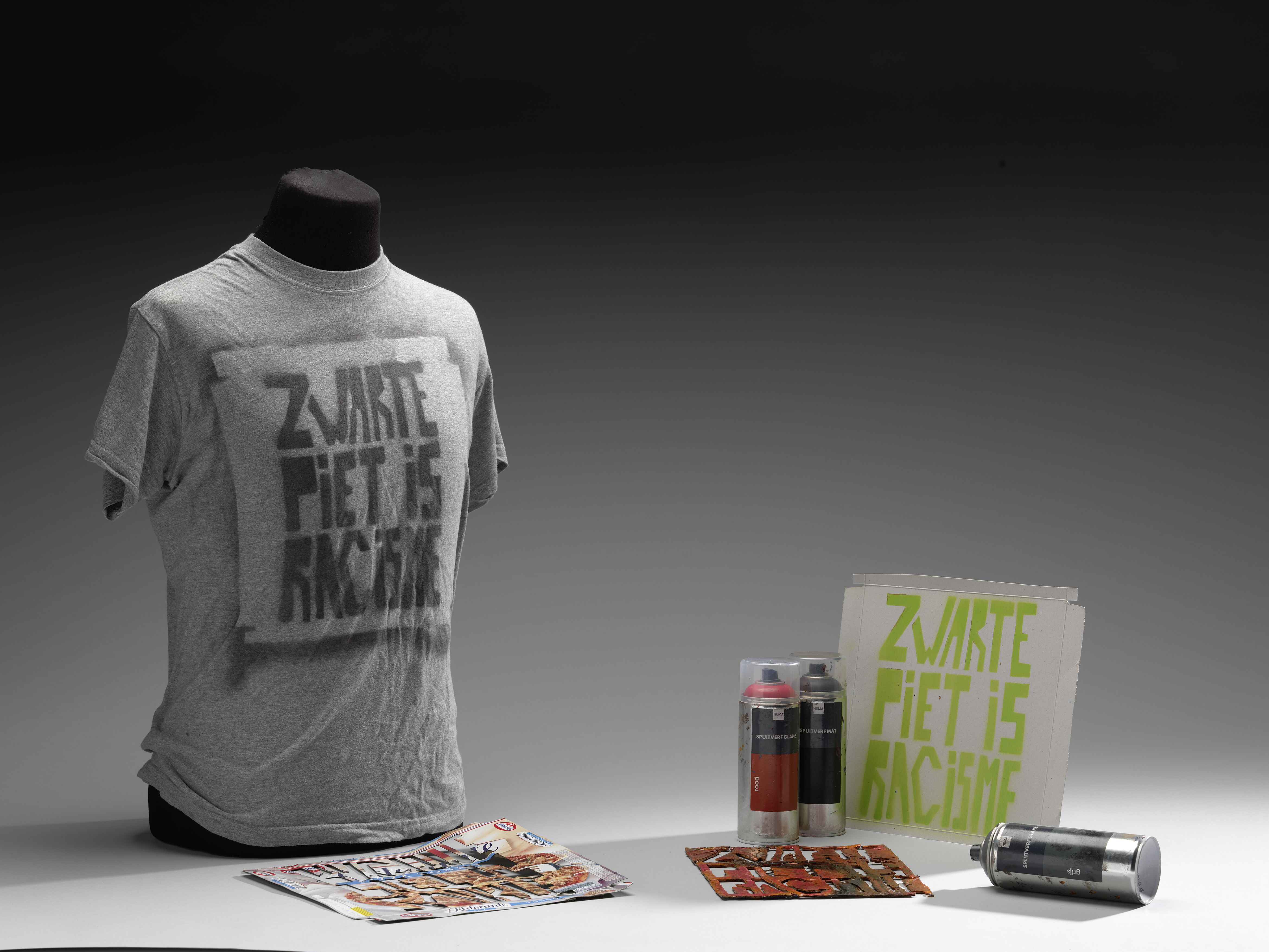 Uit het meest recente verleden bijvoorbeeld al wel in de collectie: graffiti van Hugo Kaagman, een amateur-schilderijtje van Nico en Richard met Johan Cruijff (‘Forever in our hearts’), het Koninginnedag-kleedje met speelgoed uit 2004 van Eva Schoonings en een ‘Zwarte Piet is Racisme’ T-shirt naar een ontwerp van Quinsy Gario, gedragen bij een demonstratie in Dordrecht in 2012. Komt het door het eeuwenoude pand waarin het Amsterdam Museum is gevestigd dat deze hedendaagse aanvullingen wrevel opwekken omdat ze hier wel erg weinig museale kwaliteit uitstralen? Vakfotografen hebben (bovendien in Amsterdam zelf) vast foto’s van Zwarte Piet-acties gemaakt die de kern van de boosheid vanwege racistische stereotypering ook laten zien. En een foto van balkunstenaar Cruijff zegt heel veel meer dan een niet al te best schilderijtje. Graffiti heeft de stad visueel ernstig vervuild, ook daar lijken wat foto’s genoeg eer. Vooruit, het kleedje met speelgoed mag blijven.
