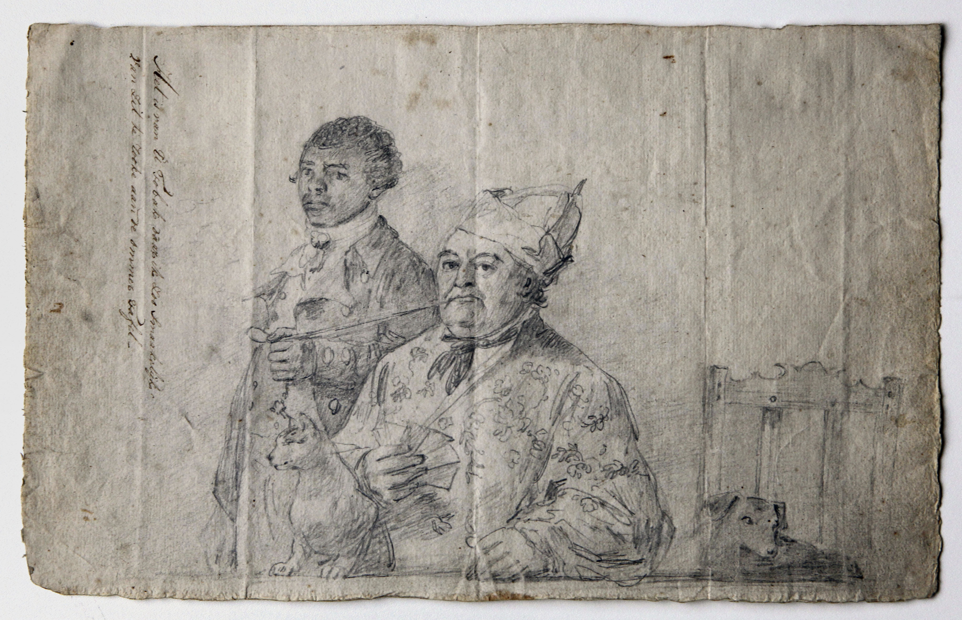 Anoniem, Hendrik Cloete met slaaf die zijn pijp vasthoudt, ca. 1788, Schwellengrebelarchief, St. Maarten