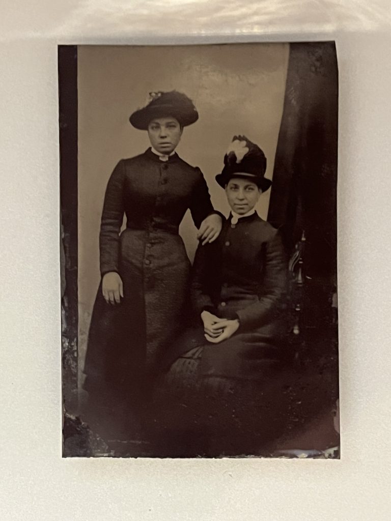 Amerikaanse ferrotypieën uit de begintijd van de fotografie (circa 1853-1930) waren relatief goedkoop en snel te maken. Zonder negatieven die compromitterend voor de buitenwereld konden zijn. De anoniem gebleven duo’s zijn misschien verliefde stellen geweest, in de intimiteit van hun portretten in elk geval los van dwingende conventies van de buitenwereld. In de laatste zaal gaan hedendaagse vrouwen broeken dragen. Museumkijker deed mee, de plooirok verdween uit het zicht, een feestelijk en onvergetelijk moment. Met lof voor de samenstellers: Point of View verdient in elk geval een boek om eeuwen gender niet uit het geheugen te laten wegsijpelen.