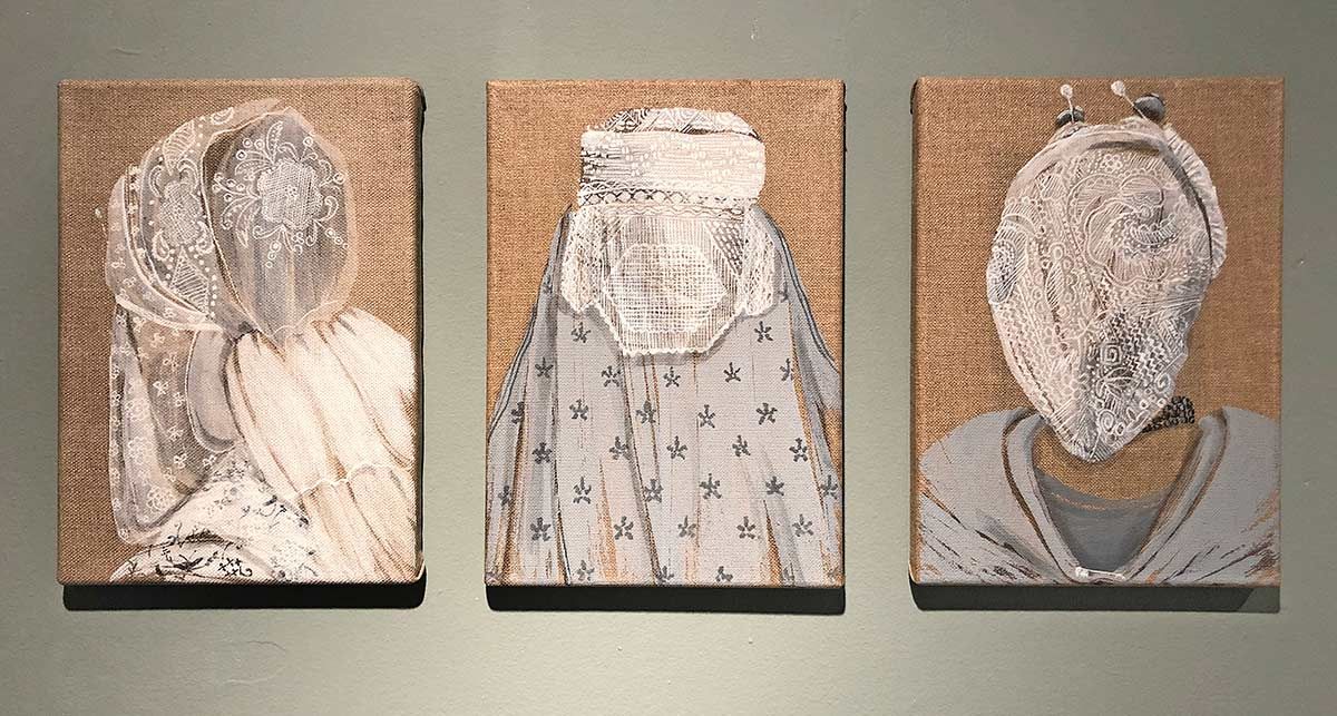 Toen Rolina Nell zich verdiepte zich in de geschiedenis van 'haar' polder, ontdekte zij oude foto’s van vrouwen in verschillende klederdracht. Op basis van die foto’s heeft zij vrouwen in streekdracht geschilderd. Door het gebruik van ei-tempera in soms bijna transparante lagen, en door een uiterst sober kleurgebruik – zwarten, witten, grijzen, bruinen – wordt de sfeer van vervlogen tijden opgeroepen. Soms – vooral bij de kleinere portretten – lijkt de kleding op zichzelf te staan, alsof de draagster eruit verdwenen is. Maar bij de grotere werken en zeker de levensgrote portretten, straalt de persoonlijkheid van de vrouw door de kleren heen. Ook zonder handen, voeten of hoofd. Ze is te zien.