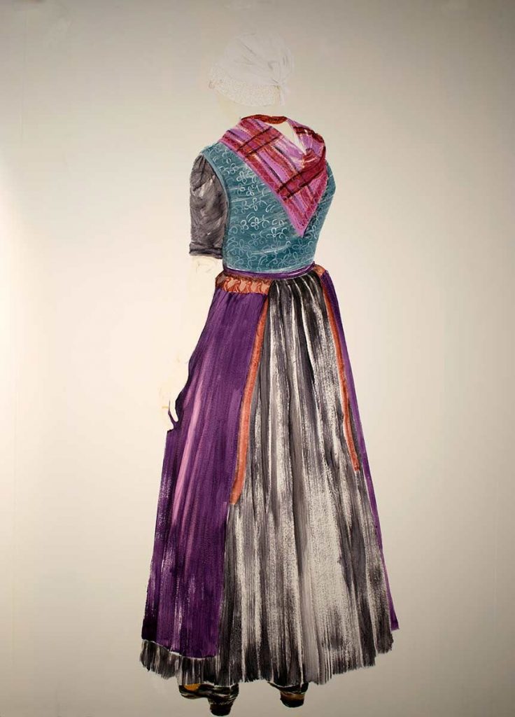 Bijzonder (en bijzonder mooi) is haar penseelvoering: trefzeker en beeldend. Van veraf zie je de persoon precies, met alle stipjes en streepjes die bij klederdracht horen. Een medebezoekster die bekend was met klederdrachten, kon in één oogopslag diverse drachten geografisch plaatsen. Walcheren! Friesland! Maar als je dichterbij komt, is het allemaal veel losser en speelser en minder realistisch geschilderd.