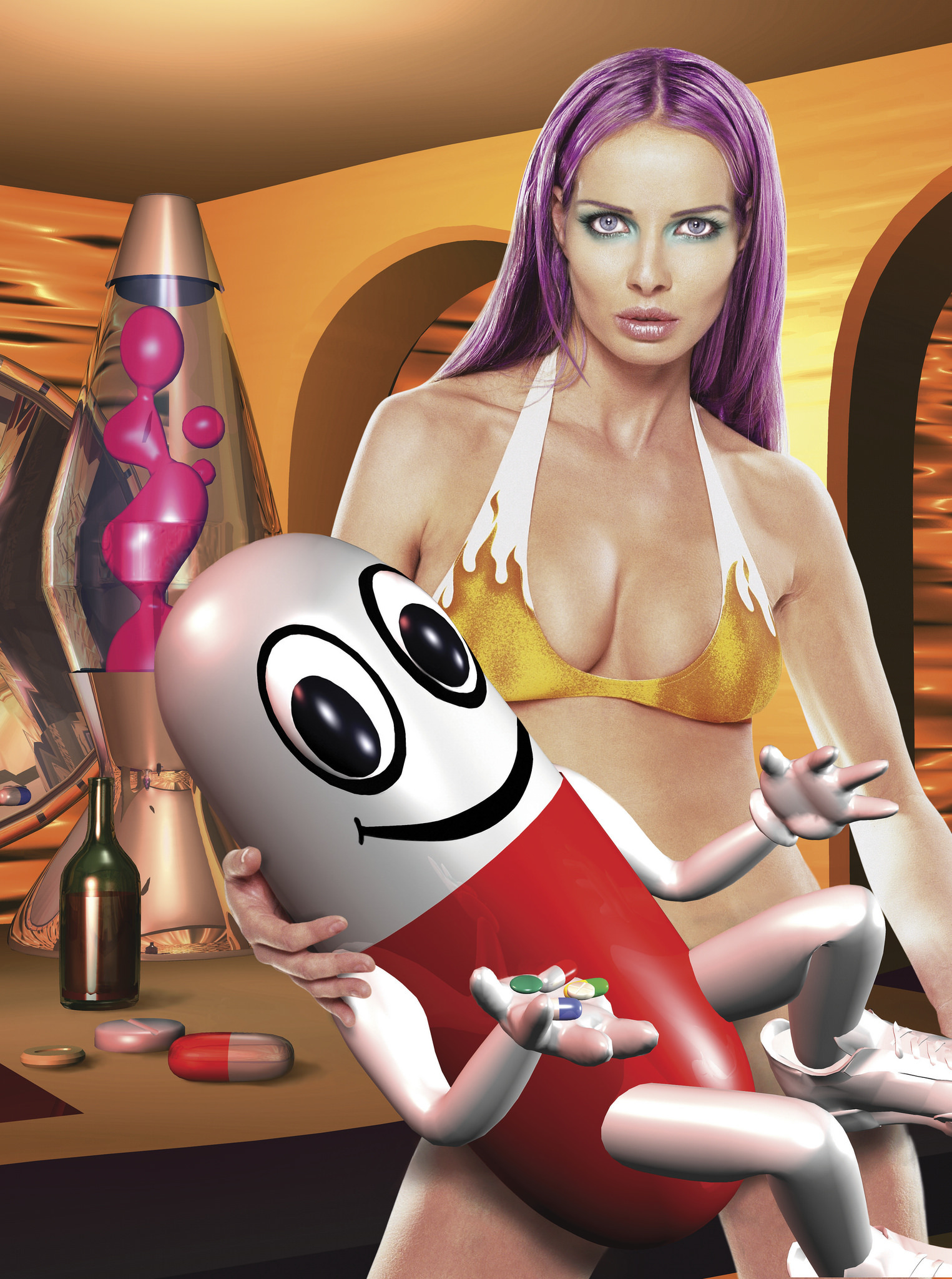 Aldert Mantje en Henk Schiffmacher zorgen tussendoor voor amusement met hun ode aan Mokum uit 2001, geïnspireerd op de schuttersmaaltijd van Bartholomeus van der Helst uit 1648. Herman Brood zit aan tafel met Willem Sandberg, de legendarische directeur van het Stedelijk Museum, Johan Cruijff schudt de hand van Jan Cremer en Bart Huges boort een gaatje in zijn schedel met de bedoeling om zijn geest te verruimen. Onvergetelijk voor wie haar in 1973 levenden lijve zag: Mathilde Willink in haar luipaardmantel van Fong Leng. ‘Made in Amsterdam’ en nu ook op de expositie. Micha Klein is aanwezig met een werk waarop een pin-up de kleine Pillman in haar armen wiegt, het rood-witte XTC-pilletje dat Klein in 1993 op de wereld zette met zijn computer.