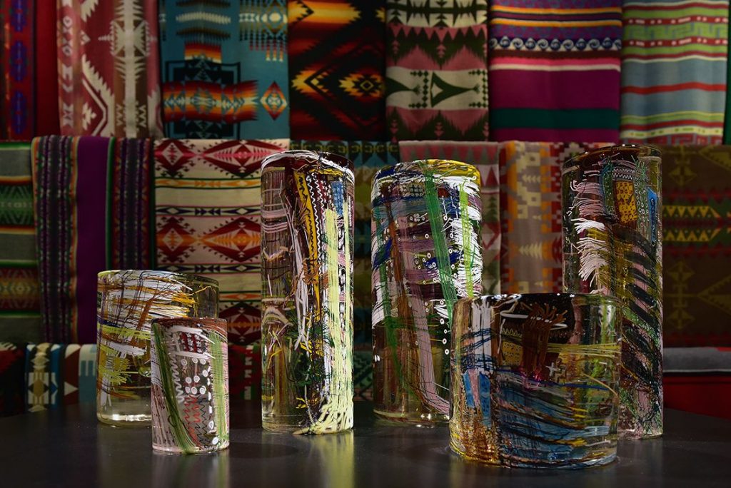 Cylinders (1970) zijn bedekt met complexe patronen van glazen draden, gemaakt door kunstenaar Flora C. Mace en geïnspireerd op Chihuly’s collectie Amerikaans-Indiaans textiel. Op een metalen plaat is met dunne draden glas een patroon gemaakt. De hete cilinder wordt over de metalen plaat gerold en het patroon hecht zich aan de cilinder. De cilinders worden getoond tegen een achtergrond van Navajo-dekens. De tekeningen omhullen de cilinders, zoals de dekens de mensen omhullen.