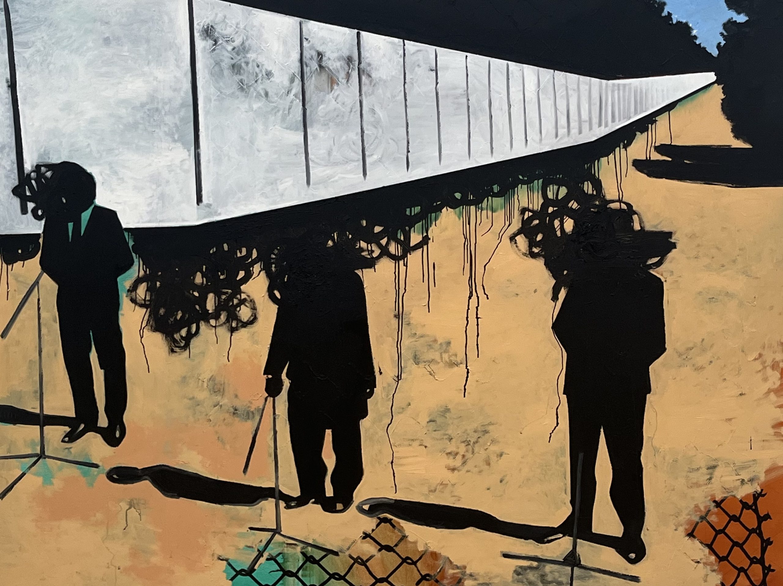 Onder de vijfentwintig werken waarmee Sasnal de erezaal vult is ook een olieverf van de openbare briefing bij de grensmuur tussen Polen en Wit-Rusland op 27 mei 2023. Aanwezig, aldus het tekstbordje: de toenmalig vicepremier van de Republiek Polen Jaroslaw Kaczynski, toenmalig minister van Defensie Mariusz Blaszczak en toenmalig staatssecretaris van Defensie Michael Wisniewski. Ze zullen er gewichtig besluitvaardig het woord hebben gevoerd. Wie kent ze nog? Met heftige zwarte verfstreken heeft Sasnal hun gezichten niet voor niets verborgen. Volgens het Stedelijk Museum legt de blik van de kunstenaar de waanzin van het moderne leven vast en zet kijkers ertoe aan na te denken over het veranderende politieke landschap en maatschappelijke normen. Voor zijn filmproject The Assistant maakte Sasnal rekwisieten in de vorm van nageschilderde meesterwerken. Zoals 'De absintdrinkster' van Picasso, een werk uit 1901. Sasnal verkent onze tijd, de huiver wandelt mee.