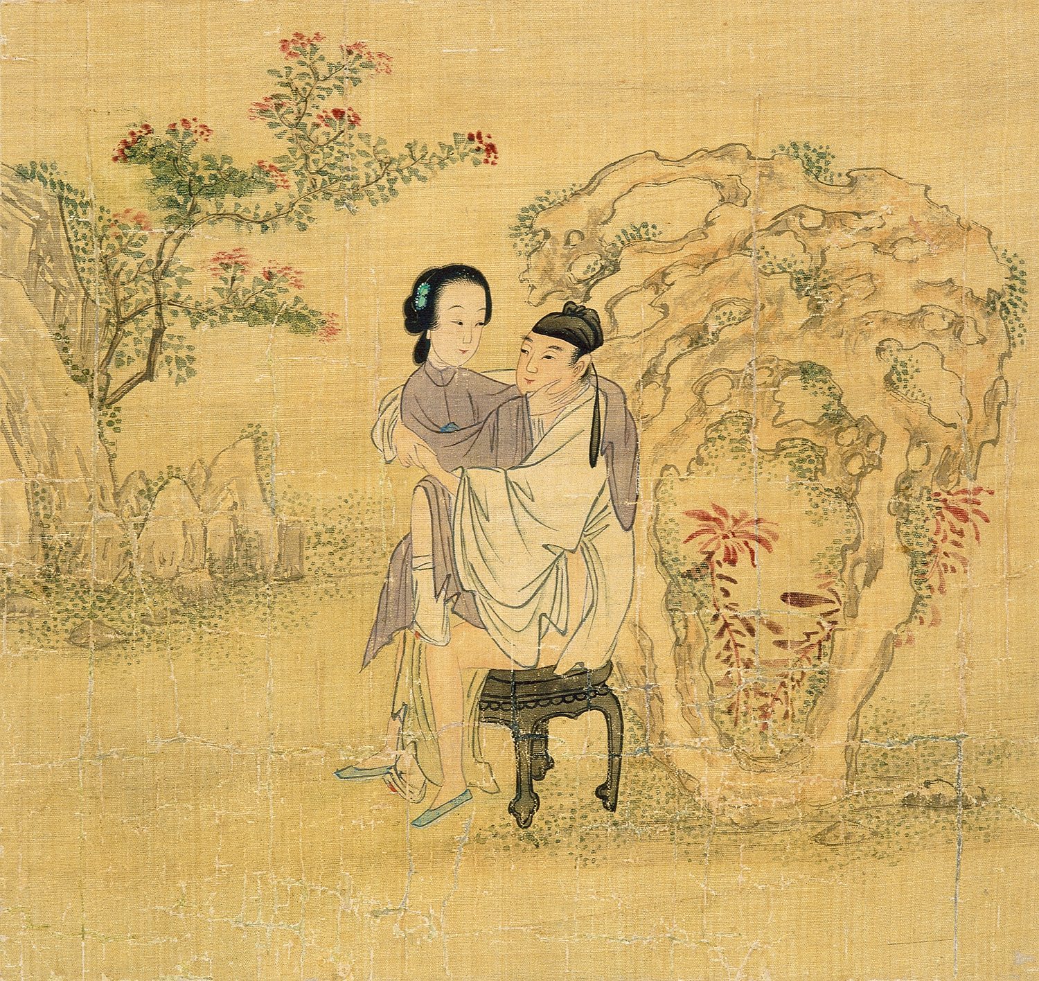 Eén van tien erotische schilderingen op zijde uit het album van Wang Sheng, late Ming-dynastie, copyright foto: F.Bertholet Collection Amsterdam