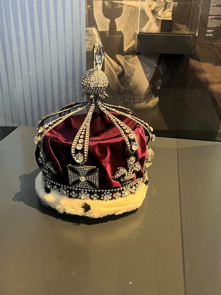 En wie droeg deze kroon? Het blijkt een replica van de kroon van de Britse koningin Mary, jaartal onbekend. Met de Koh-I-Noor, een wereldberoemde diamant uit India. In 1849 was koningin Victoria ontevreden over de glans, in 1852 laat ze de steen opnieuw slijpen door Coster Diamonds in Amsterdam. Volgens het tekstbordje 'schittert de diamant als nooit tevoren'.
