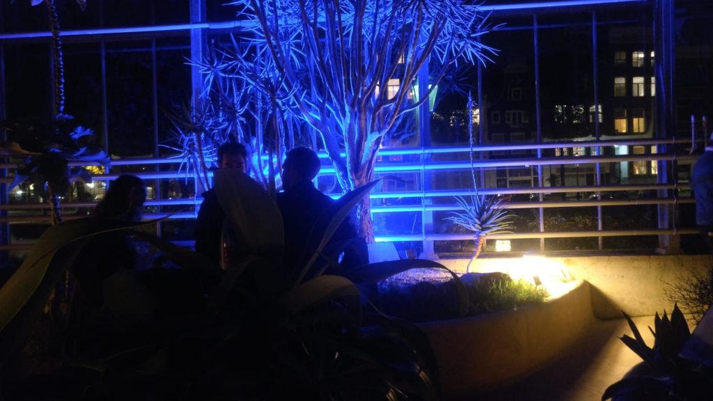 *Julia van der Sluijs (student global management of social issues, Tilburg, 20) en Rijk van Beek (UvA-student geschiedenis, 20) stuurden om 2.31 uur vannacht deze sfeervolle foto's van de negentiende editie van de Museumnacht Amsterdam. Ze hadden ook nog energie voor een korte recensie, waarvoor dank: 'Lange rijen, gemixt publiek (ouder bij Hortus en Portugese Synagoge, jonger bij Scheepvaartmuseum en Artis). Het aantal evenementen op vaste tijdstippen ging ten koste van doorstroom en betekende dat veel mensen gewoon heel lang moesten wachten, zonde. Maar we vonden de Museumnacht een hele leuke ervaring!' Museumkijker blikte afgelopen donderdag vooruit op deze jaarlijkse mega-publiekstrekker in de hoofdstad. De ruim 30.000 kaarten waren uitverkocht, voor vierenvijftig locaties waren 250 evenementen georganiseerd.