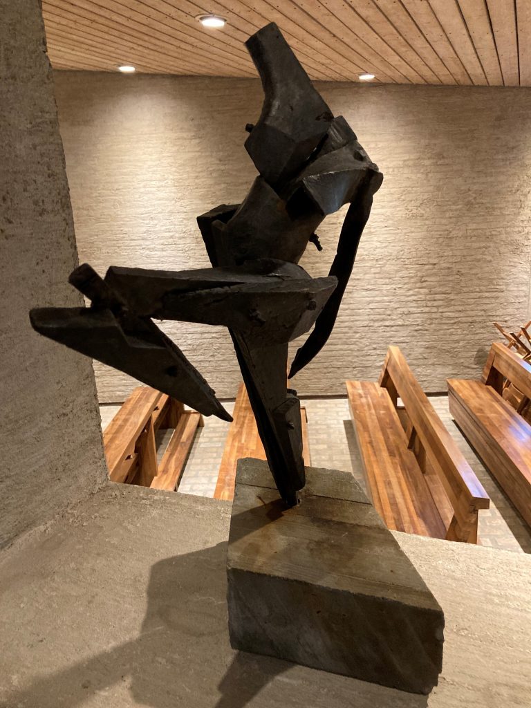 'Alles wat ik te zeggen heb, zit in deze kerk', zijn de enige woorden die Sijmons (1908-1989) aan zijn levenswerk heeft gewijd. Cremer, zelf opgeleid tot architect, ging op zoek naar de betekenis van het werk van zijn grootvader. 'Origins' is uitkomst van zijn eigen zoektocht naar de oorsprong van het bestaan: zijn beelden zeggen in hout en steen wat zijn grootvader met architectuur wilde uitdrukken. Middelpunt in de kerk is een vijf meter hoge sculptuur. Die reikt hemelwaarts, elders in de kerk staan bronzen beelden van de serie 'Choreography of the Origins', grondslag voor de sculptuur.