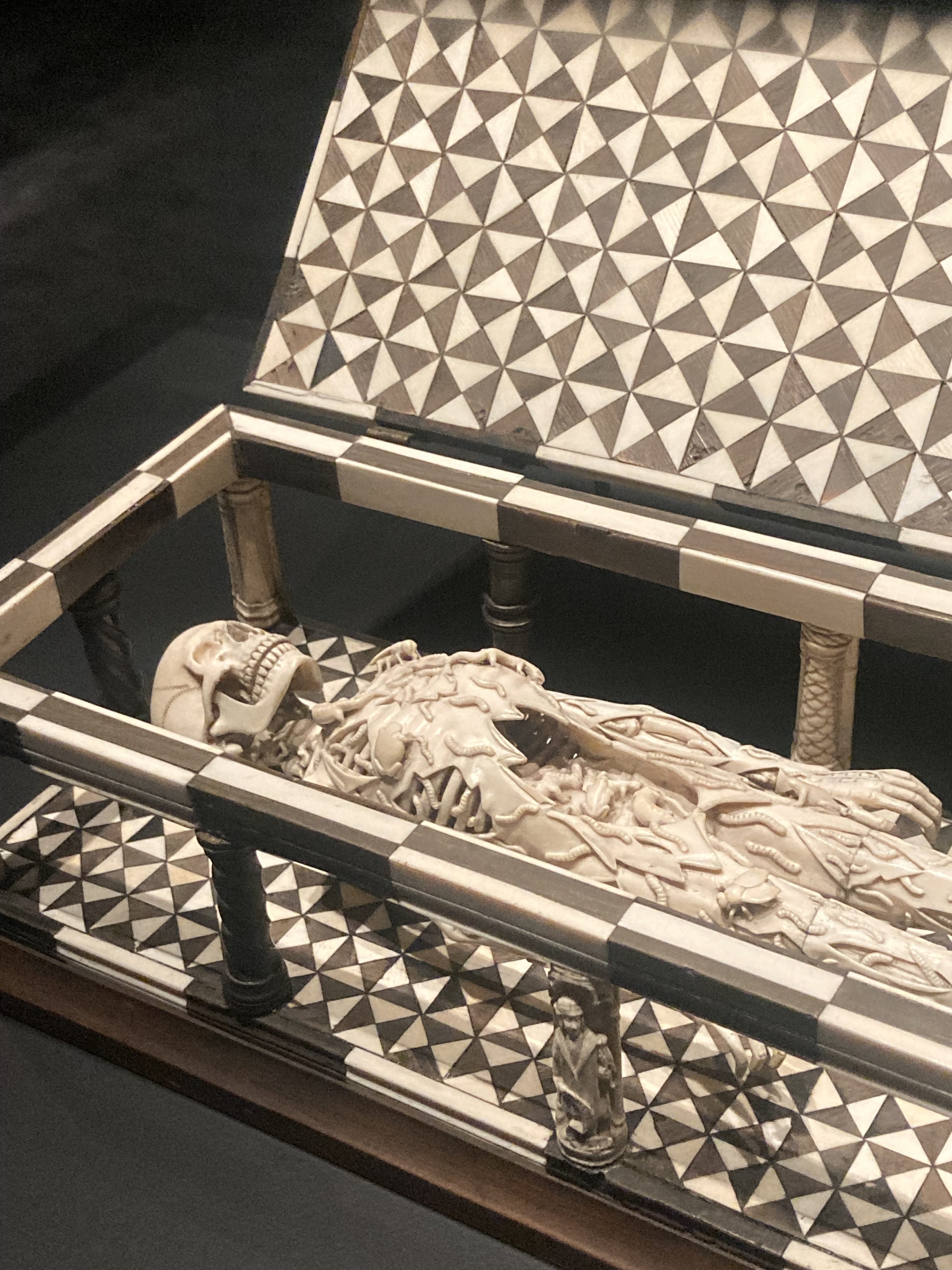 Memento Mori in de vorm van een lijkkist, toegeschreven aan Chicart Bailly, 1520-1530, expositie Onderkruipsels Rijksmuseum, eigen foto