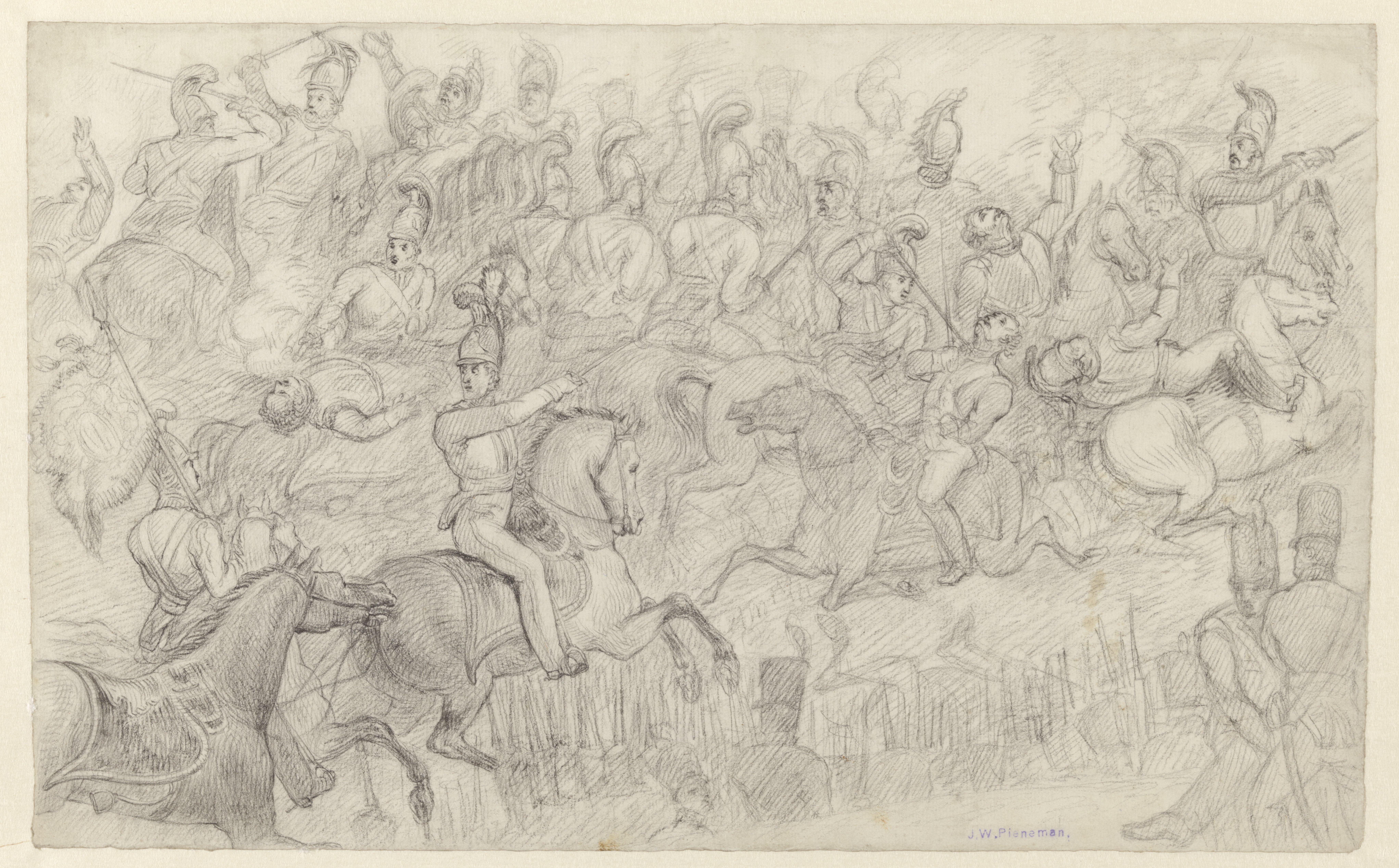 Bijzonder op de presentatie – uit de eigen collectie, zelden te zien - zijn ook de tekeningen die Pieneman als studie voor zijn schilderij maakte. De hectiek van de strijd voelt op deze levendige tekeningen in zwart krijt spannend dichtbij. Wexy, het opgezette paard van Willem II dat het bloedvergieten overleefde, mocht er na de grote tentoonstelling over de kunstcollectie van zijn baas in Dordrecht, ook weer bij zijn in het Rijksmuseum.