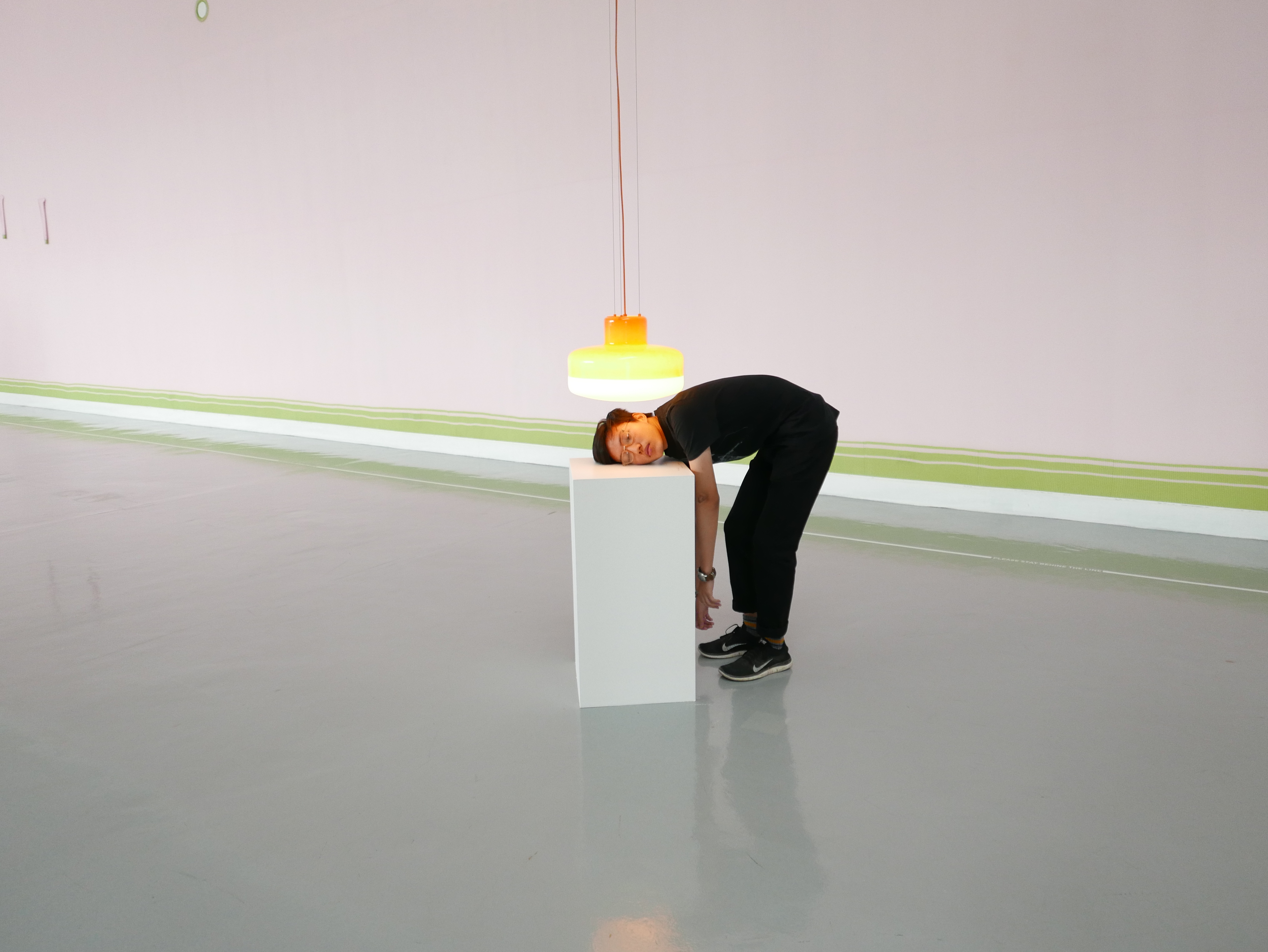 De geestigste afdeling van de expositie is die van de ‘One Minute Sculptures’, waar Wurm al 25 jaar aan werkt. Het zijn alledaagse voorwerpen, zoals een trui, een meubel, of een paar tennisballen met een op de vloer getekende instructie. Het is aan de toeschouwer om het werk tot leven te roepen. Alleen kijken is niet voldoende, ‘Dan telt het kunstwerk niet.’ Je wordt als bezoeker direct aangesproken op je vermogen tot speelsigheid. Als je de instructies niet opvolgt beleef je ook niets. Dus of je maar op een kluitje tennisballen wilt gaan liggen. Op twee basketballen wilt gaan staan. Grote roze pluche beesten wilt omarmen. Rare kledingstukken op een afwijkende manier wilt aantrekken. Een bank met een rond gat in de rugleuning waar je je hoofd door kunt steken. Dus wie de uitnodiging om te gaan spelen aanneemt heeft veel plezier en wie gereserveerd aan de kant blijft staan beleeft weinig en vooral je eigen geremdheid. De conventies om naar kunst te kijken.