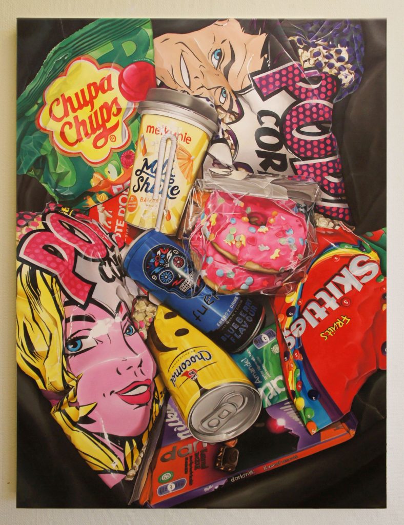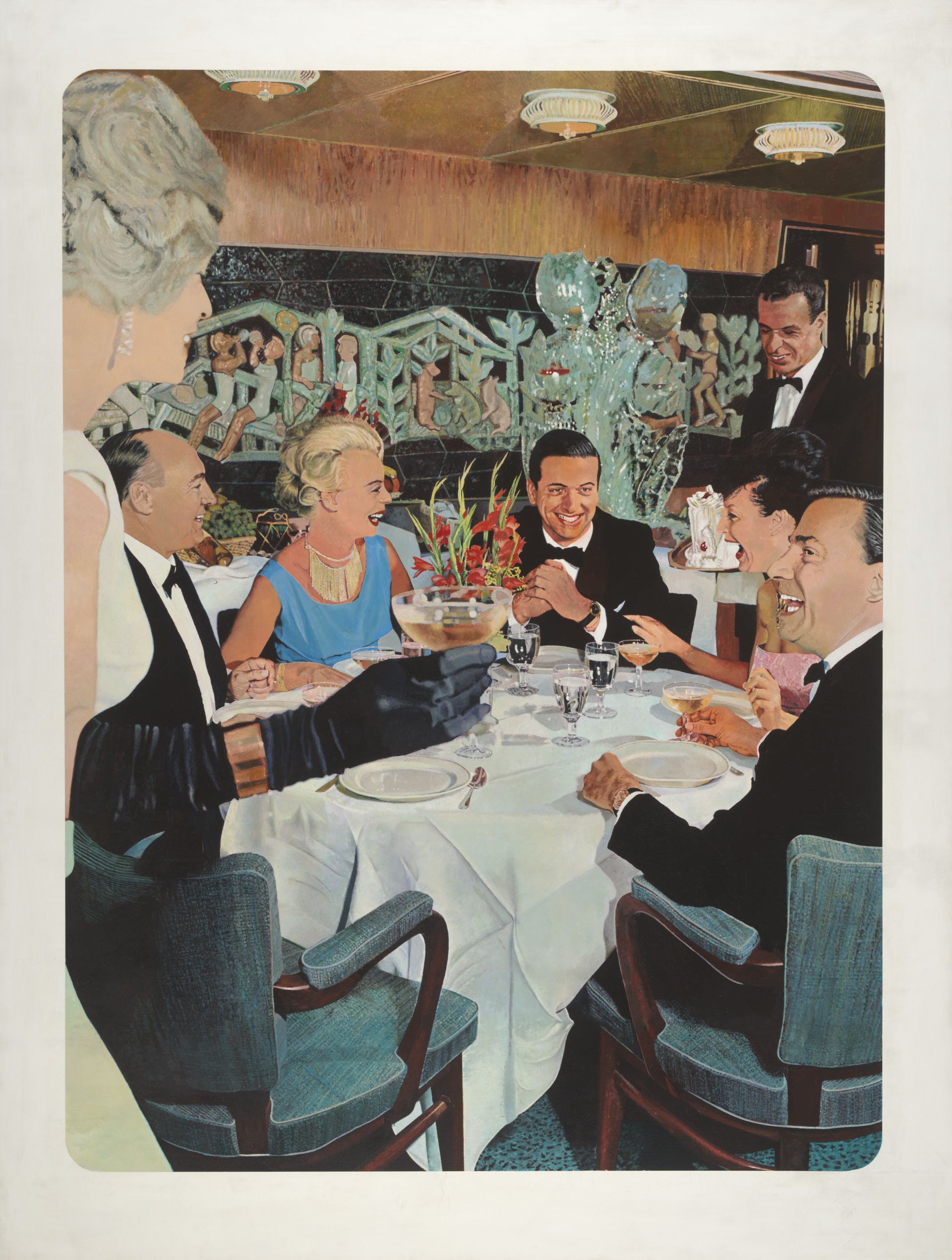 Het moge duidelijk zijn: Postma is van oordeel dat de getoonde werken meer aandacht en respect verdienen, maar ze zegt erbij: er hangt een verhaal omheen dat ook verteld moet worden, zoals telkens weer: dat van het ontbreken van vrouwelijke kunstenaars en van kunstenaars van kleur. Zij breidt de fotorealistische canon dan ook uit met werken van kunstenaars als Audrey Flack, die geen auto’s schilderde, maar fonkelende juwelen en vrouwelijke iconen. ‘Secret Spaces’ (1972) van de Amerikaanse Joan Semmel (1932), in bruikleen van Tate, biedt tegenwicht aan de male gaze van John Kacere en andere mannelijke fotorealisten. ‘Secret Spaces’ is een hyperrealistisch intiem zelfportret: de kunstenaar schildert delen van de huid: haar armen, buik, benen, plooien. Ook mooi is de Canadese Allison Katz met vervreemdende schilderijen van haar oma die naar beeldende kunst kijkt. Indrukwekkend is het werk de Kameroense Alida Ymele die migrantenvrouwen half-transparant afbeeldt, even onzichtbaar als het werk dat ze doen. En van de Enschedese kunstenares Bobbi Essers, die collages schildert op basis van smartphonekiekjes van haar Gen Z-vriendengroep. De Amerikaanse Issy Wood schilderde het interieur van een blauwe auto, net als Don Eddy, maar voegt daar happy onions aan toe in ‘Convertible with happy onions’ (2023). De Brits-Amsterdamse kunstenares Esiri Erheriene-Essi reageert met ‘Main Lounge drinks on the Queen Mary’ (2023), dat ze speciaal voor deze tentoonstelling maakte, op ‘Ship’s Dinner Party’ van Malcom Morley. Ook op haar schilderij is een groep mensen op een cruiseschip te zien, maar hier zijn de afgebeelde personen zwart.