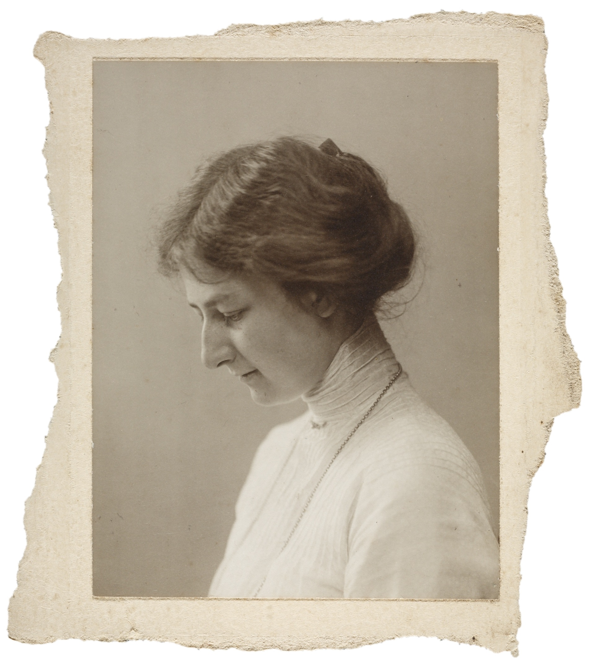 Portret Willy Wentholt, omstreeks 1919, fotograaf Johan Huijsen, archief Cis en Leo Heijdenrijk, RKD, Wentholt met 'losse haartjes' in haar hals