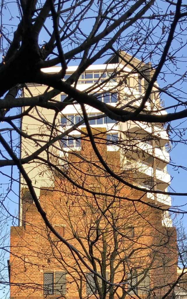 *Zodra het oog van fotograaf Claire van Lierop een spannend spel van licht en schaduw ziet, of verwacht, wordt ze enthousiast en is er de aandacht voor lichtval en lijnen: 'Dat lijkt de rode lijn in mijn fotografie te zijn. Mijn foto's geven vaak een detail weer dat niet altijd herkenbaar is en dat je als een abstract beeld kunt ervaren.' Bovenstaande foto op Instagram - vandaag geplaatst - is een typerend voorbeeld van die abstractie. Wat zien we? We mogen het zelf bedenken. De foto blijkt een reflectie van het 12de-eeuwse Drakenburg en de recent verbouwde Neudeflat uit 1961 in de Utrechtse Oudegracht. Van Lierop: 'Broederlijk naast elkaar, er zitten acht eeuwen tussen.' Het beeld dat ze heeft vastgelegd is puur en zonder fotobewerking tot stand gekomen.