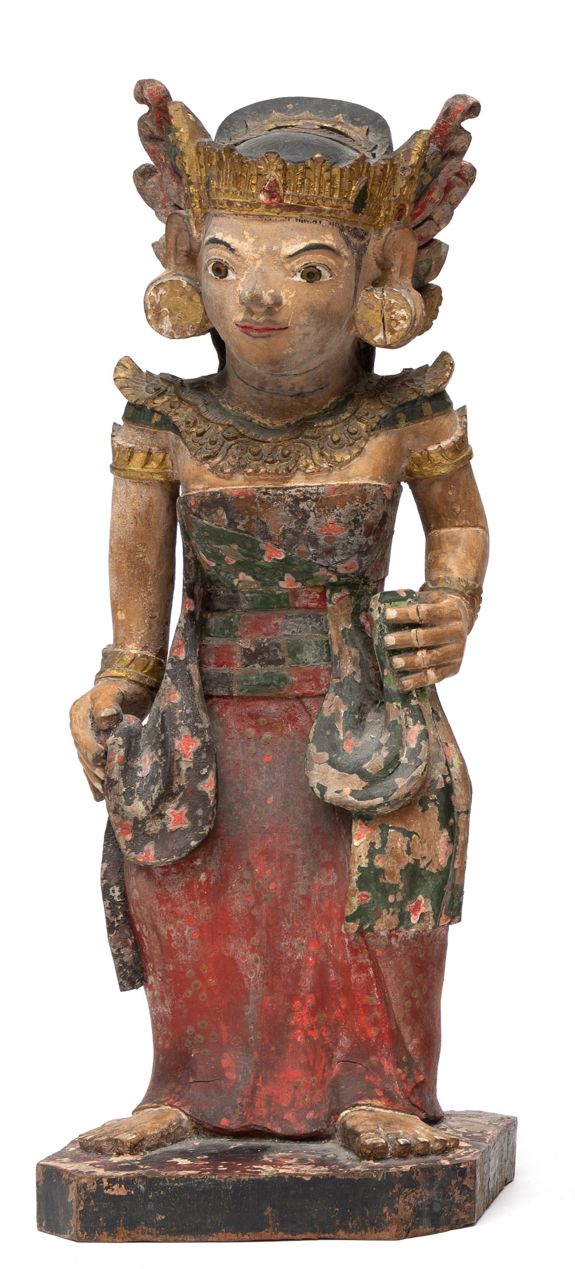 Bali,een polychrome houten staande vrouwenfiguur, ca. 1900, in hofkleding, mogelijk Dewi Sri, 600-800 euro, Foto: Arend Velsink