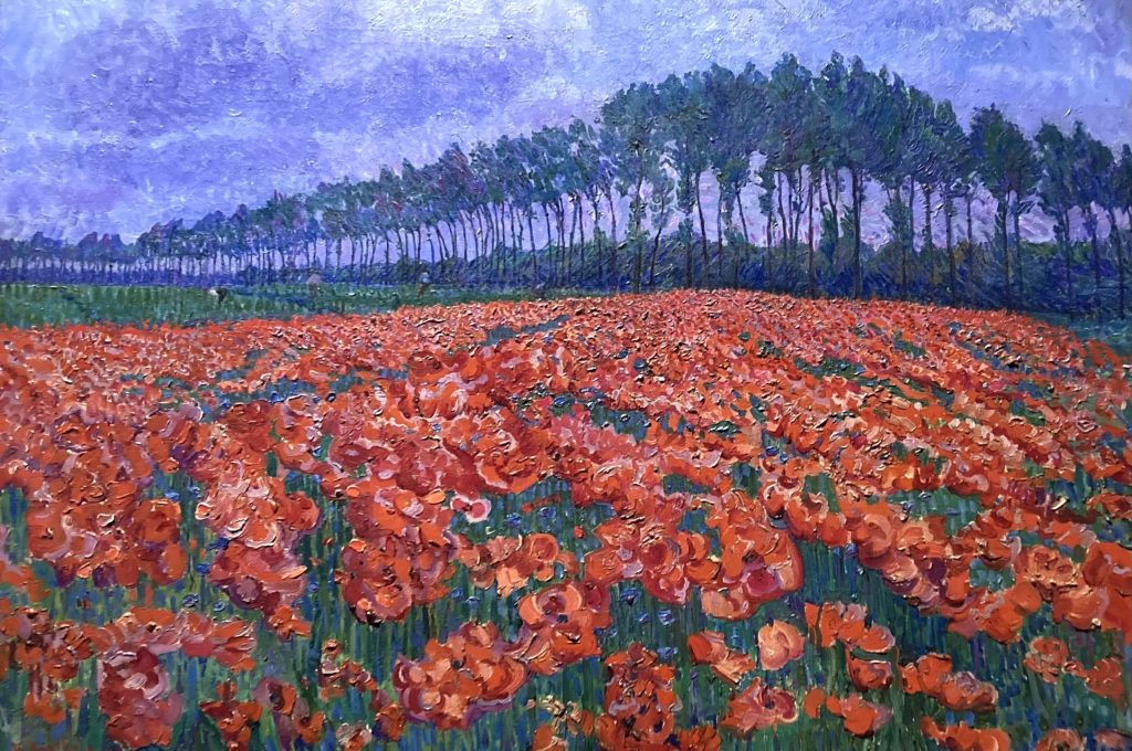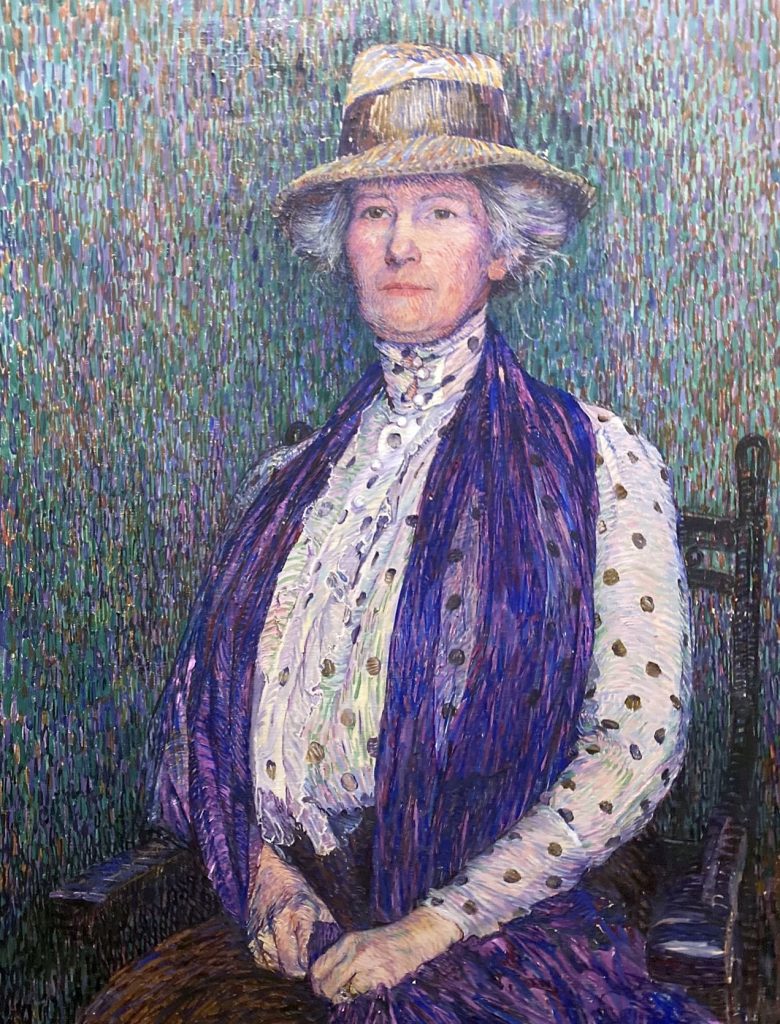 Ben onder de indruk van ‘Landschap’ (1917) waarop een zonnig zomers veld met bloeiende lelies afgebeeld is. Er zit enorm veel kleur in wat het schilderij heerlijk energiek maakt. En ‘Bloemenveld in volle bloei bij Hattem’, een veld vol knalrode bloemen, die ze dik in de verf heeft gezet, duidelijk geïnspireerd op Van Gogh. Van de portretten valt dat van Marie Jeannette de Lange (1919) op, die voorzitter was van de Vereeniging voor Verbetering van Vrouwenkleeding en ijverde voor afschaffing van het korset. Van haar reizen door Europa zijn de beelden uit Concarneau in Zuid-Bretagne en bergdorpen als Positano in Italië, zeer inspirerend. Je krijgt enorme zin er op uit te trekken en alle facetten van de natuur en de wereld in je op te zuigen.