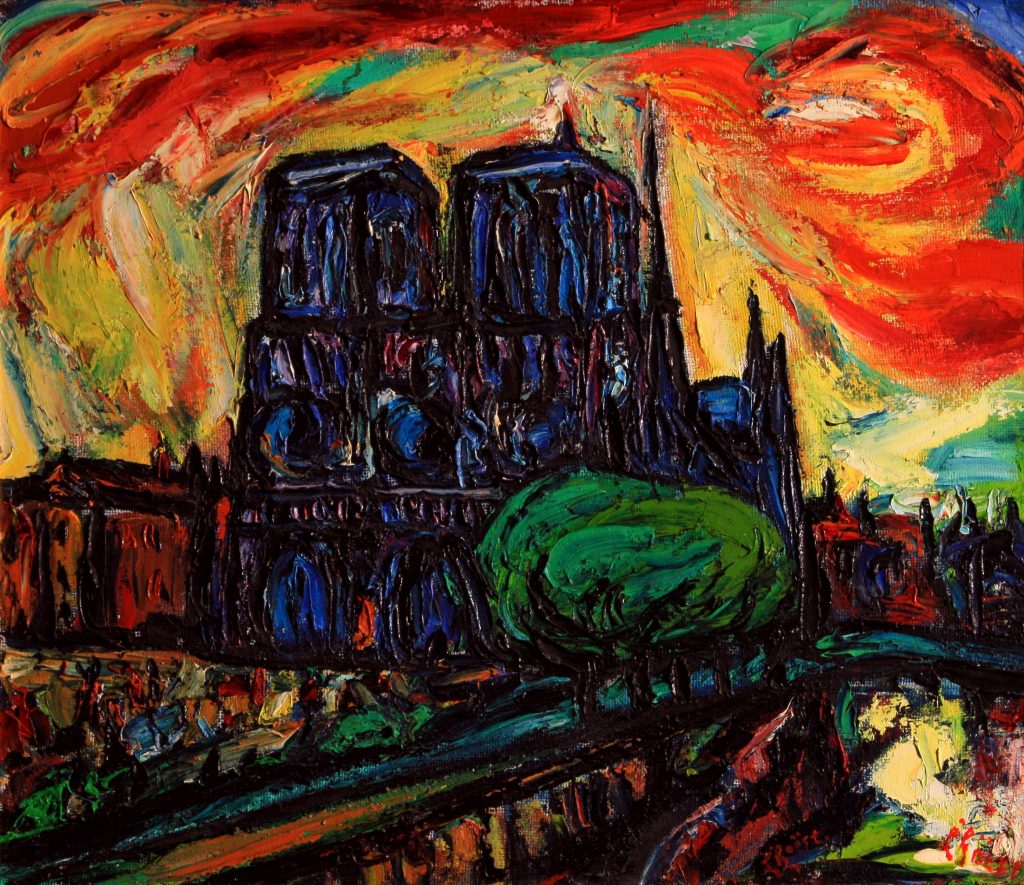 Notre Dame, olieverf op jure, 1978, 60 x 70 cm. Collectie Museum Flehite