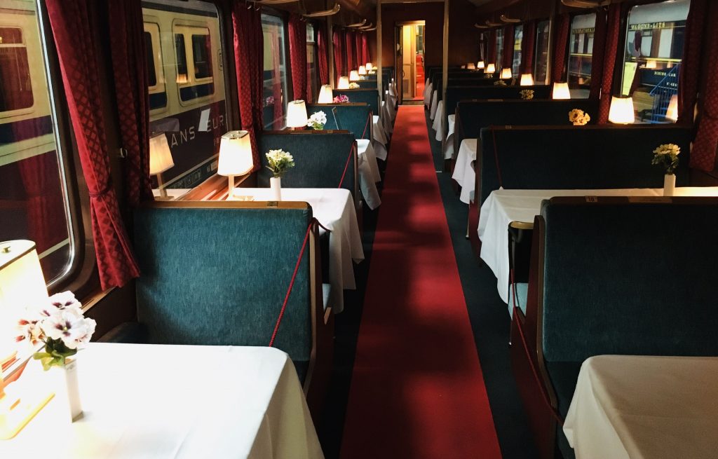 Van de eigen collectie van het Spoorwegmuseum staat er het beroemde en ongelooflijk luxe ingerichte, houten dinerrijtuig van de Oriënt Express uit 1911, het oudste restauratierijtuig op de tentoonstelling. De houten rijtuigen die Wagon Lits liet bouwen voor de internationale treindiensten maakten het mogelijk om lange afstanden te reizen, zonder te hoeven stoppen om te eten. Ze waren het hoogtepunt van het luxe treinreizen van begin 20e eeuw. Tot ver in de twintigste eeuw reisden prinsessen, filmsterren en andere welgestelden met die legendarische trein van Parijs naar Constantinopel (Istanbul). Ze aten er als in een sterrenrestaurant: meergangendiners met soms truffels, kaviaar en andere delicatessen. Het rijtuig heeft een centrale verwarming met kolenkachel, een keuken met kolenfornuis, ijskasten en allerlei keukenhulpmiddelen. De eetzaal heeft 36 zitplaatsen, aan twee- of vierpersoonstafels.