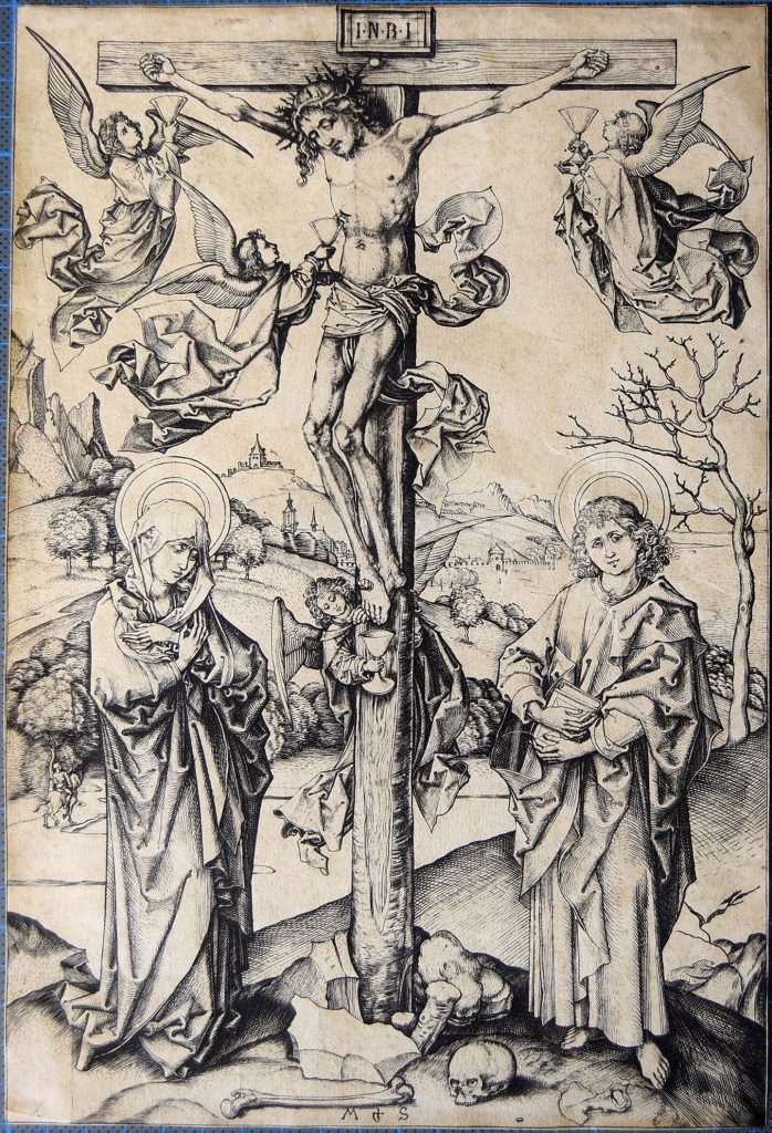Hoogtepunt onder de aankopen van de afgelopen tien jaar is - volgens het Rijksmuseum - de gravure ‘Kruisiging met vier engelen’ (ca. 1485) van Martin Schongauer (1430-1491), de grootste prentmaker uit de late middeleeuwen: ‘Deze onlangs ontdekte afdruk van zijn ‘Kruisiging’ behoort tot de mooiste en best bewaarde werken die we van hem kennen. Het uitgeteerde lichaam en gezicht van Christus zijn met uiterst fijne lijnen in de koperplaat gesneden. Diezelfde gevoeligheid en finesse bezitten Maria, Johannes en de vier engelen die Zijn bloed opvangen.’ Vlakbij op dezelfde wand verrast de vroegst bekende voorstelling van een haringbuis op een gravure van ‘Meester W met de sleutel’ - vermoedelijk werkzaam in Brugge - gemaakt ca. 1490. Dit scheepstype werd sinds de 12de eeuw in de Nederlanden gebruikt voor de haringvangst.