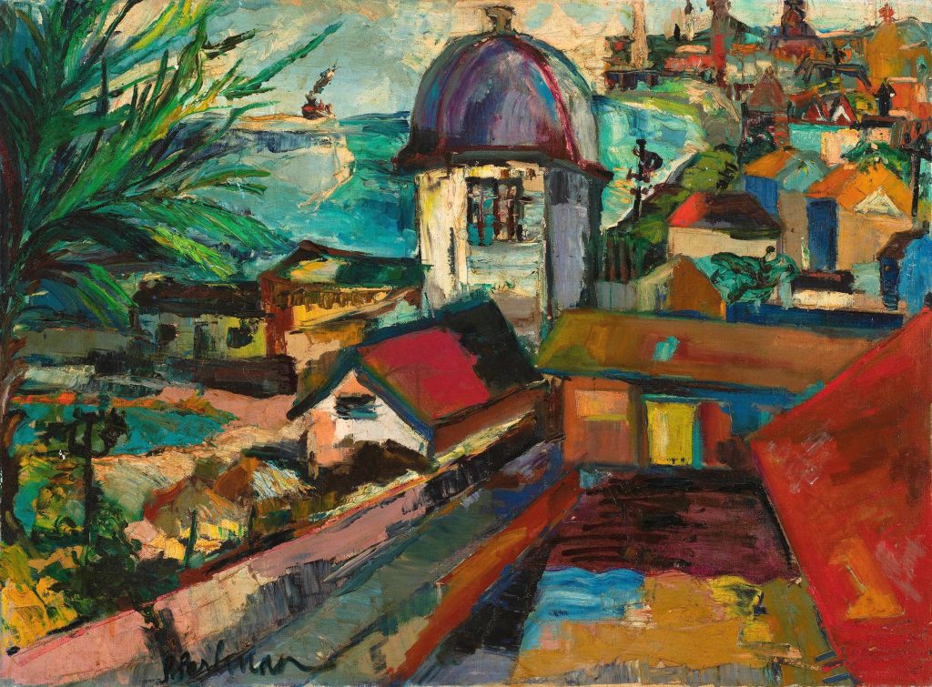 Het schilderij ‘Casa Bolivar’ (1947) vereeuwigt met gedurfde kleurcontrasten en grove opzet van ver de straten en daken van Willemstad. Centraal staat het huis waar de Venezolaanse revolutionair Símon Bolívar tijdens zijn ballingschap na een mislukte opstand in 1812 verbleef. Ze schilderde dit huis meerdere malen. Wellicht was het voor haar een weerspiegeling van haar eigen zoektocht naar een veilig thuis.