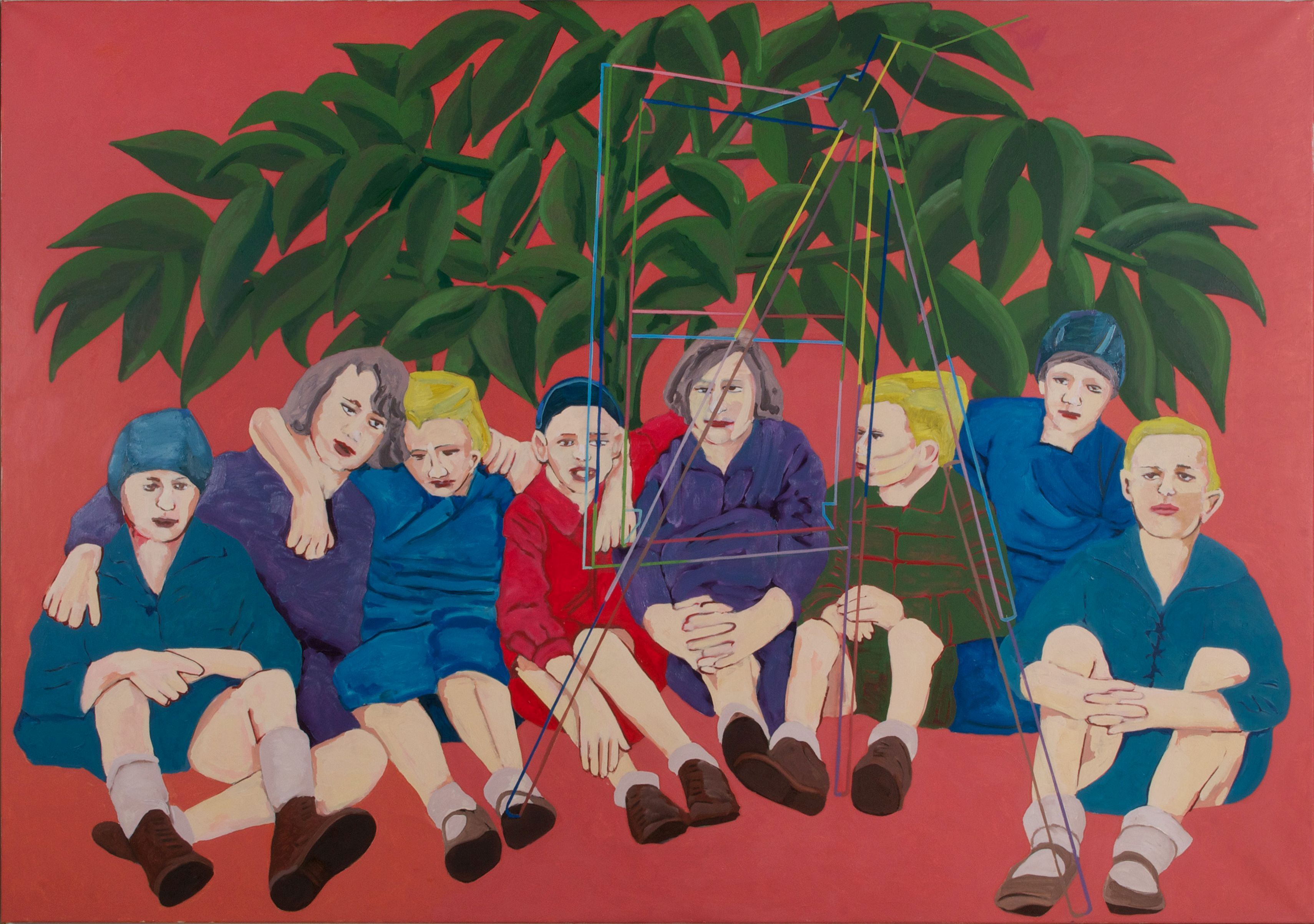 In de tentoonstelling wordt het verhaal áchter zijn schilderijen slechts af en toe onthuld, maar dat er overal een groot drama schuilgaat is navenant. Dat komt dan ook recht naar binnen. Zijn beelden vindt hij in de kunstgeschiedenis, visuele media, wetenschappelijke wereld en zijn eigen omgeving. Het schilderij van een groepje jongens onder een chocoladeboom ontregelt bijvoorbeeld omdat het bij nader inzien net zo goed oude mensen kunnen zijn. De geportretteerden hebben helemaal geen plezier of contact. Ad Gerritsen heeft deze groep regelmatig afgebeeld. Het beeld blijkt gebaseerd op een foto van een groep jongens uit de Hitlerjugend. Het belangrijkste motief door alle thema’s heen is de kwetsbaarheid van de enkeling. De figuren op de schilderijen lijken ieder voor zich te bestaan, ook al zijn ze omgeven door anderen. De steun van de groep lijken ze nodig te hebben om zichzelf te legitimeren.