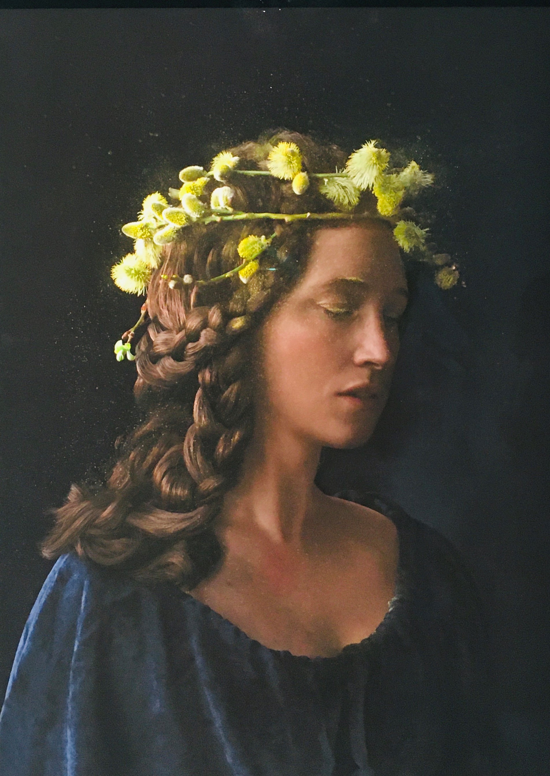 Fotografe Suzanne Jongmans maakte bijzondere portretten in de traditie van geschilderde portretten uit de 15e, 16e en 17e eeuw. Pas in tweede instantie ontdek je de hedendaagse materialen die ze gebruikt heeft in de portretten: verpakkingsfoam als kap of een deksel van een blikje dat fungeert als gouden ring. Een hoody toont gelijkenis met de pij van een monnik. Of het prachtige zelfportret ‘In the midst of it all’ dat de corona-periode symboliseert. Jongmans fotografeerde zich overladen met gele bloemen als symbool voor als het mooie en nieuwe dat gaat komen.