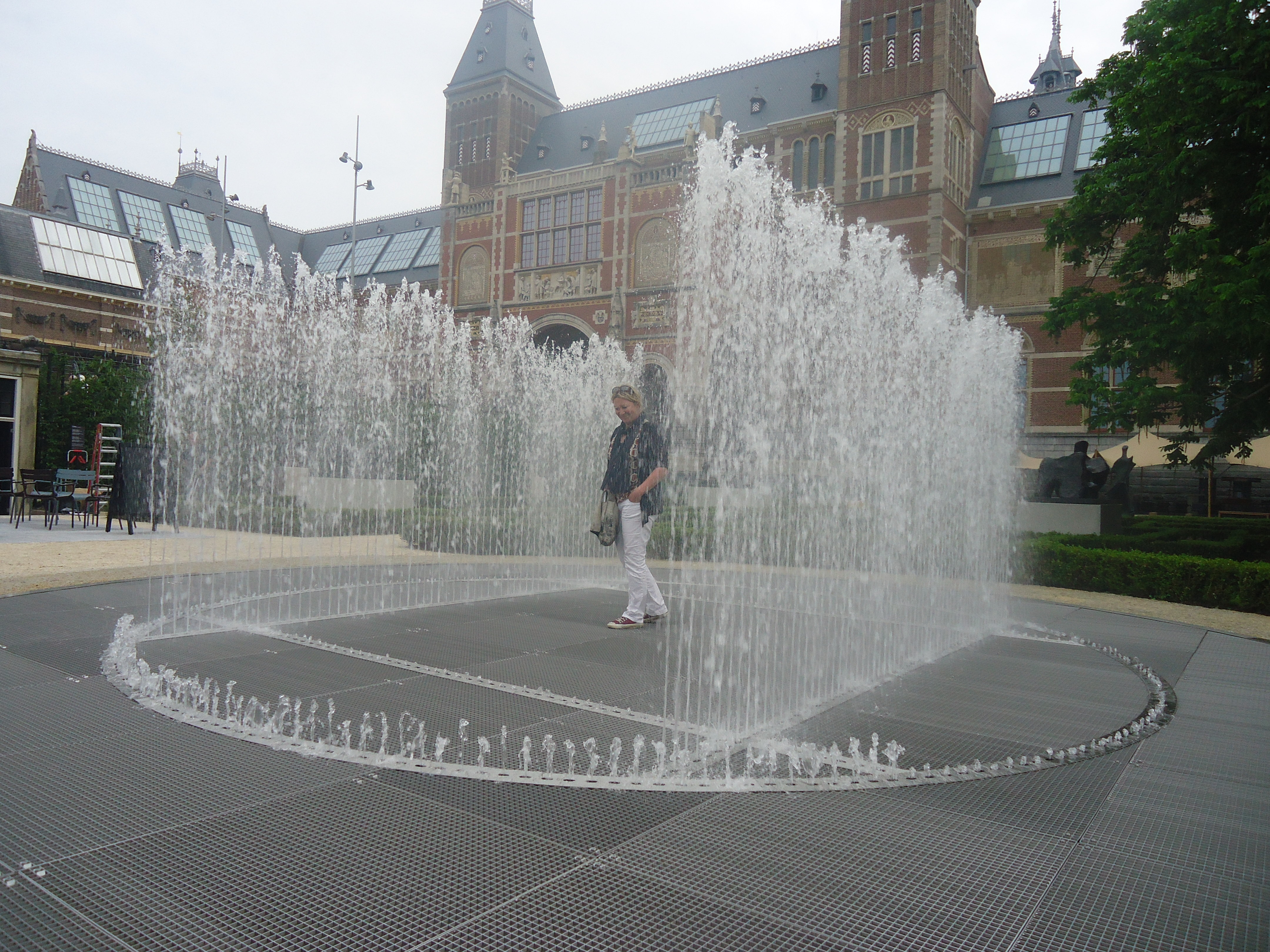 Het waterpaviljoen van de Deense kunstenaar Jeppe Hein, bezoekers hebben twaalf seconden tijd om zonder nat te worden naar het midden te lopen. Eigen foto.