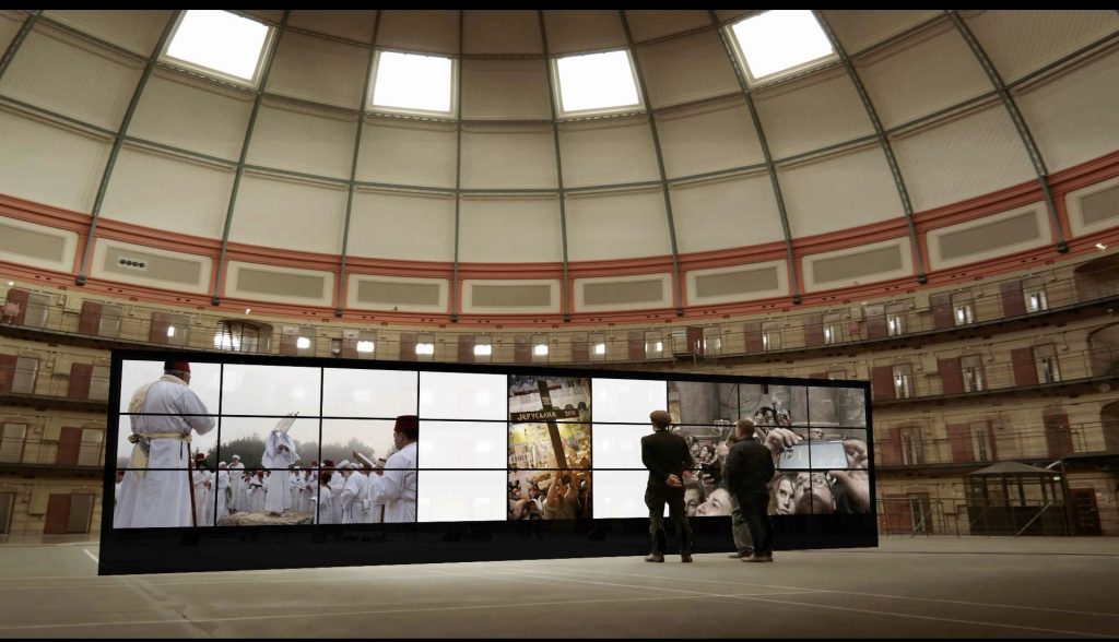 Geert van Kesteren (Nederland, 1966) maakte voor de Koepelgevangenis ‘The Believers’, een video-installatie over de manier waarop ‘dataïsme’ – het idee dat het universum uit datastromen bestaat – een plek tussen de grote religies opeist. Uit de – voortreffelijke – catalogus: ‘In Israël, waar hij al jaren woont, zag hij hoe ons digitale leven haast religieuze trekjes krijgt. Hij filmde Samaritanen die al duizenden jaren de Gerizim berg beklimmen, maar ook mensen die alles met hun telefoon filmen en delen. Van Kesteren: ‘Ze worden onderdeel van de datastroom, het nieuwe levensdoel’.’ Selfies maken bij de Klaagmuur, zou het gelukkiger maken?